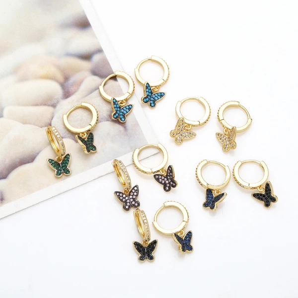 Brincos de borboleta simples e elegantes, mais vendidos, brincos com diamantes, design de nicho, brincos combinando, eru60