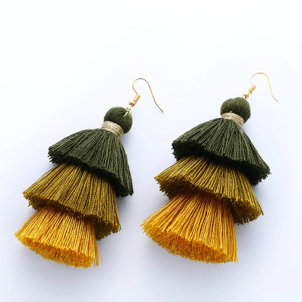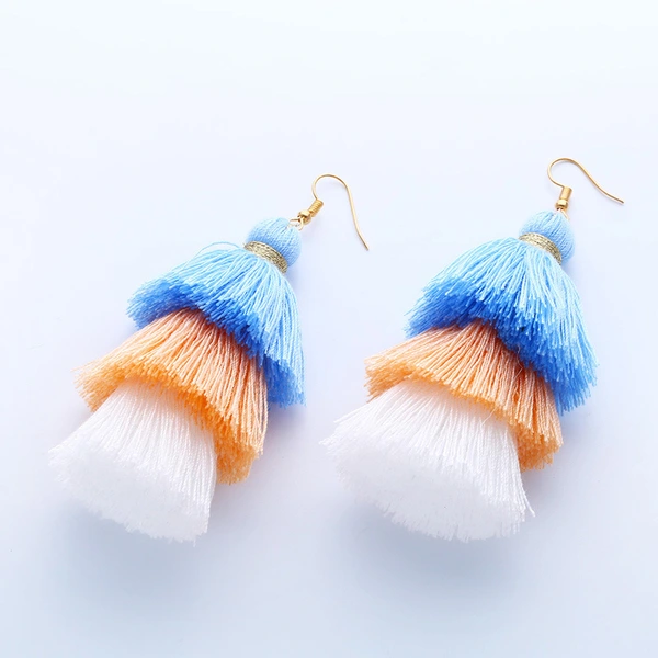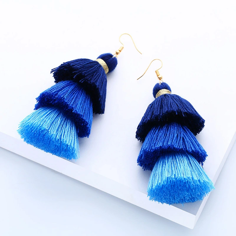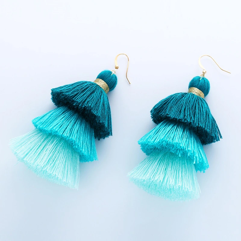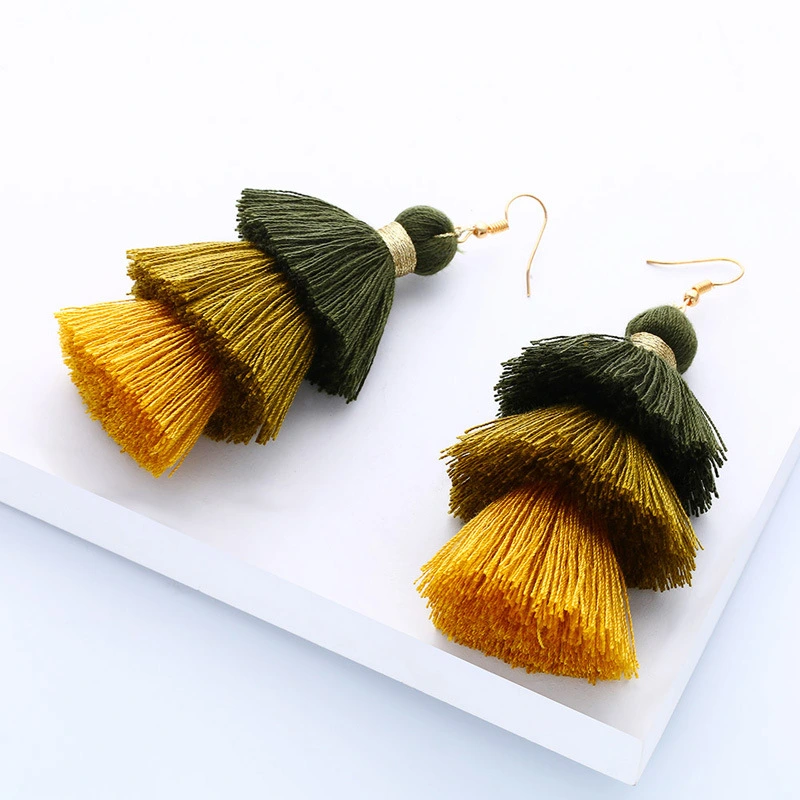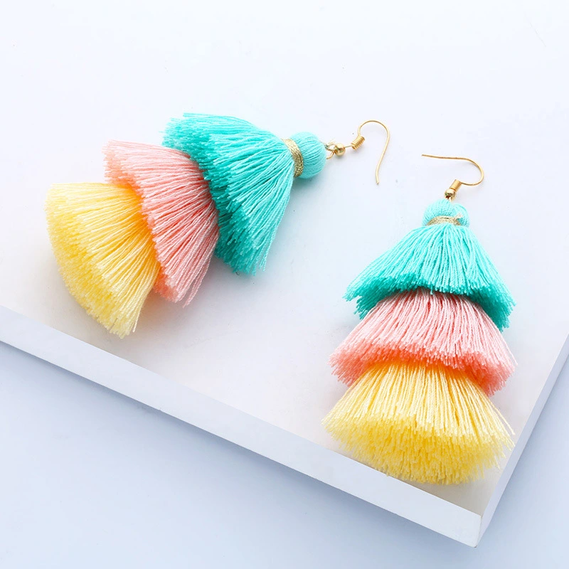 Brincos de borla estilo boêmio étnico, novo estilo, joias de pelúcia em gradiente de cor, vendas diretas erk04