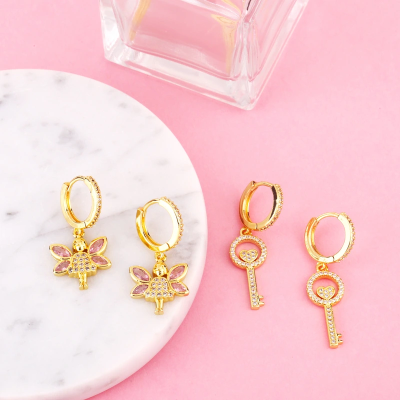brincos de chave simples retrô da moda brincos europeus e americanos de zircônia borboleta elfo ery49