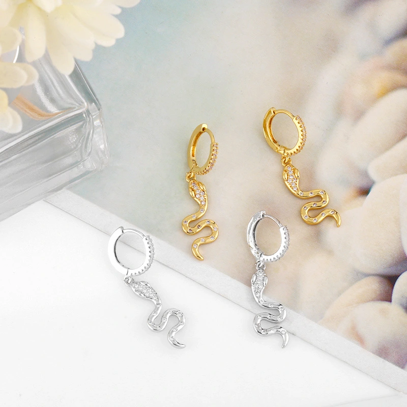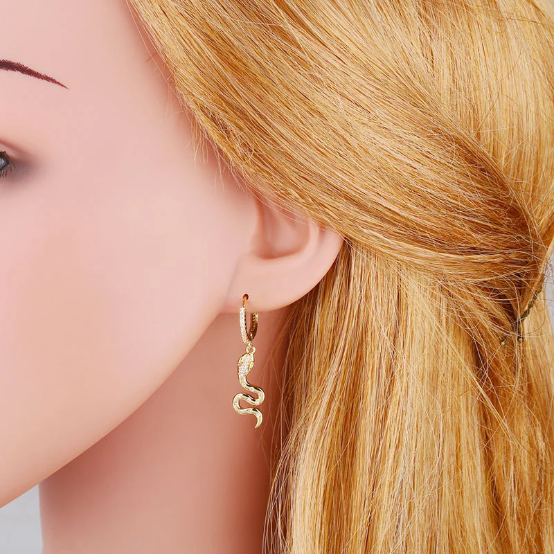 Brincos de cobra de personalidade estilo metal europeu e americano, brincos modernos de cobra vermelha, joias para orelha erw49