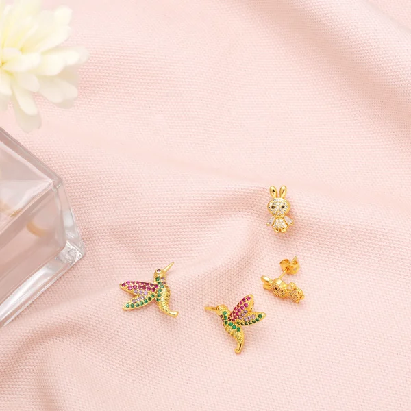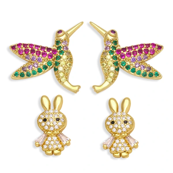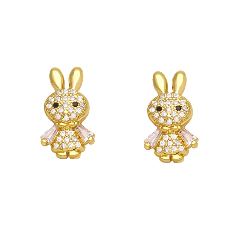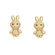 Brincos de coelho fofos e fofos para meninas, brincos de zircônia estilo nicho, brincos erz45