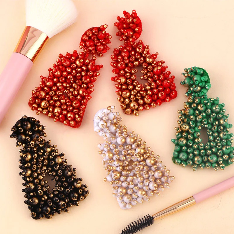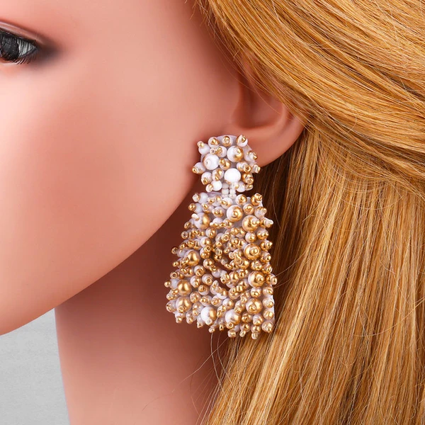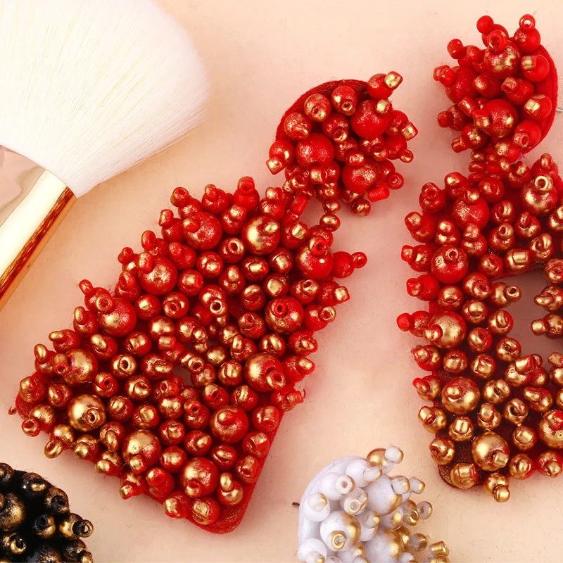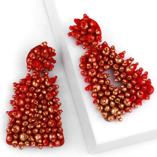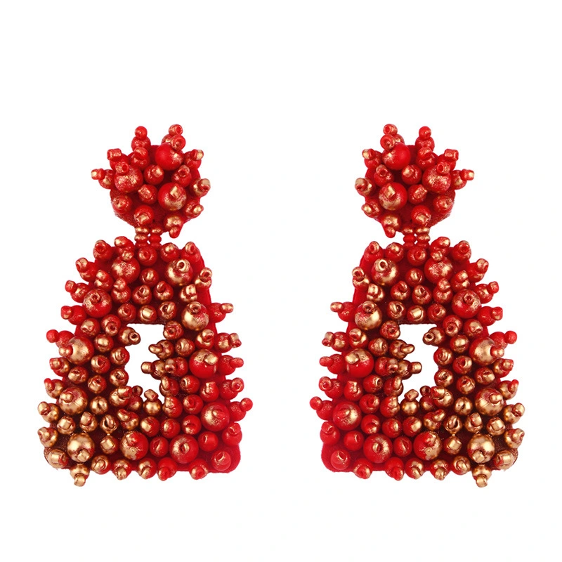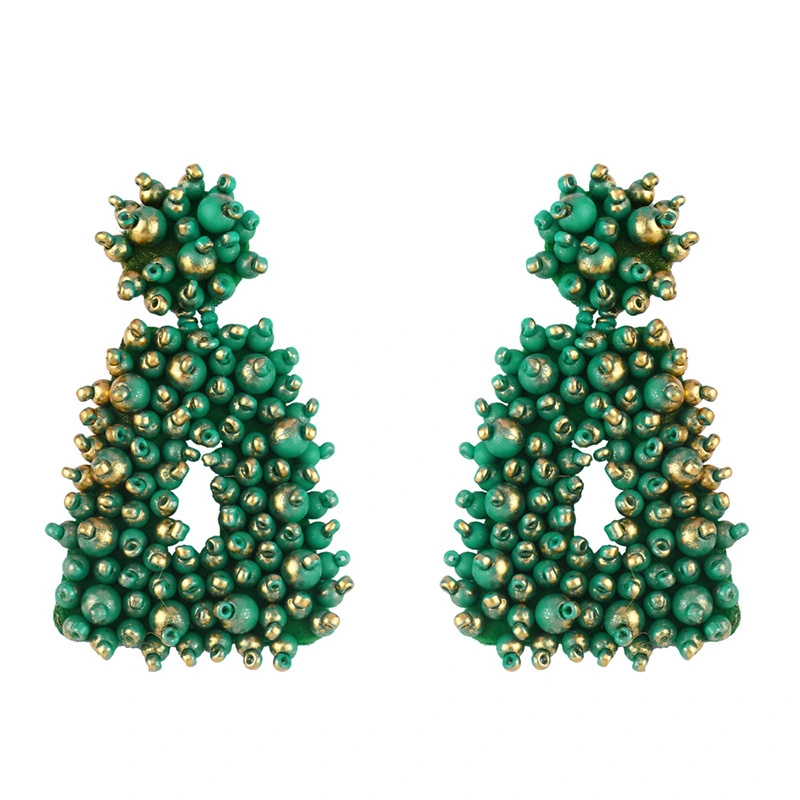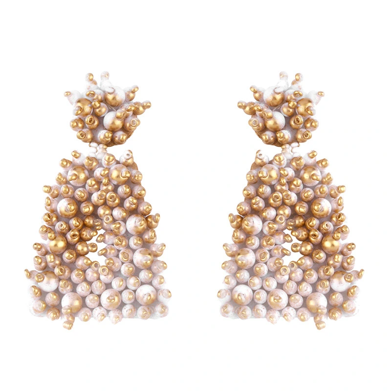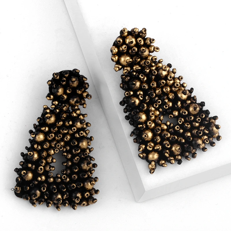 Brincos de contas de arroz de metal exagerado originais europeus e americanos, brincos de estilo frio femininos da moda, brincos femininos erq94