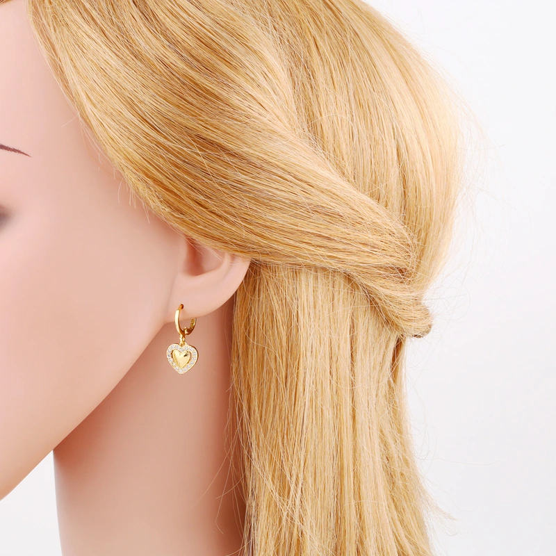 Brincos de alta qualidade para serviços pesados, totalmente incrustados, luxuosos brincos de coração em forma de C, brincos de moda europeus e americanos