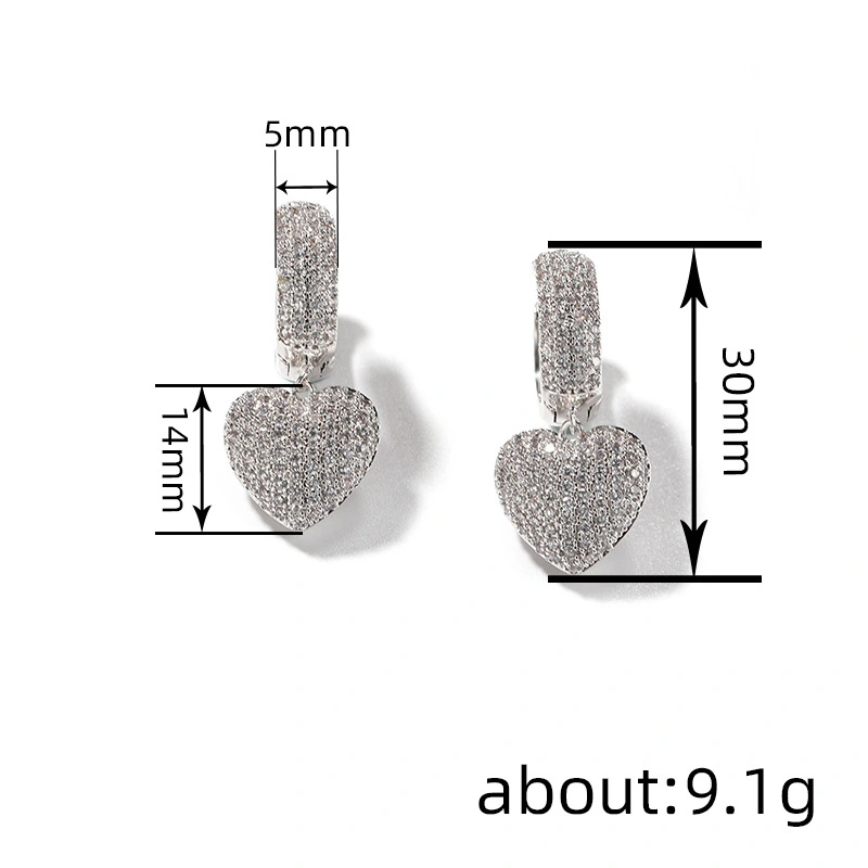 Brincos de coração de amor europeus e americanos para mulheres incrustados com zircônia brincos em forma de coração noivado joias doces e elegantes