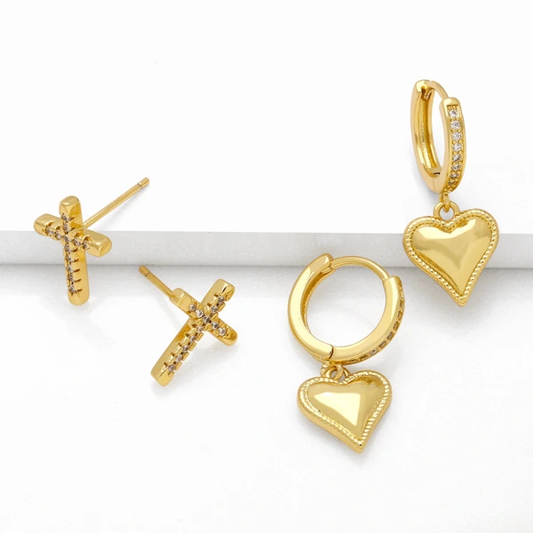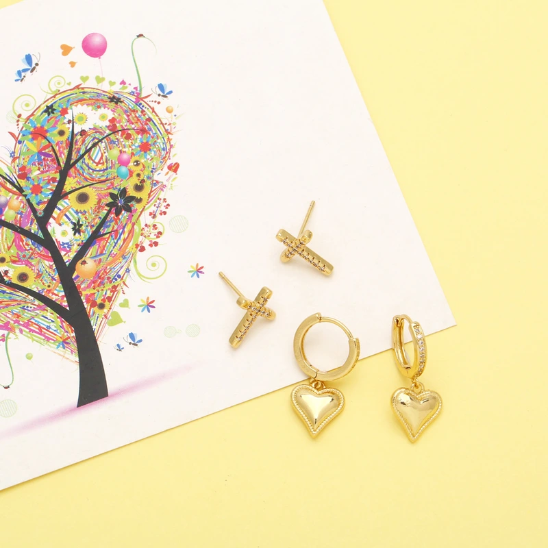 brincos de coração de metal estilo europeu e americano, brincos de cruz de estilo frio femininos, brincos retrô de nicho ert67