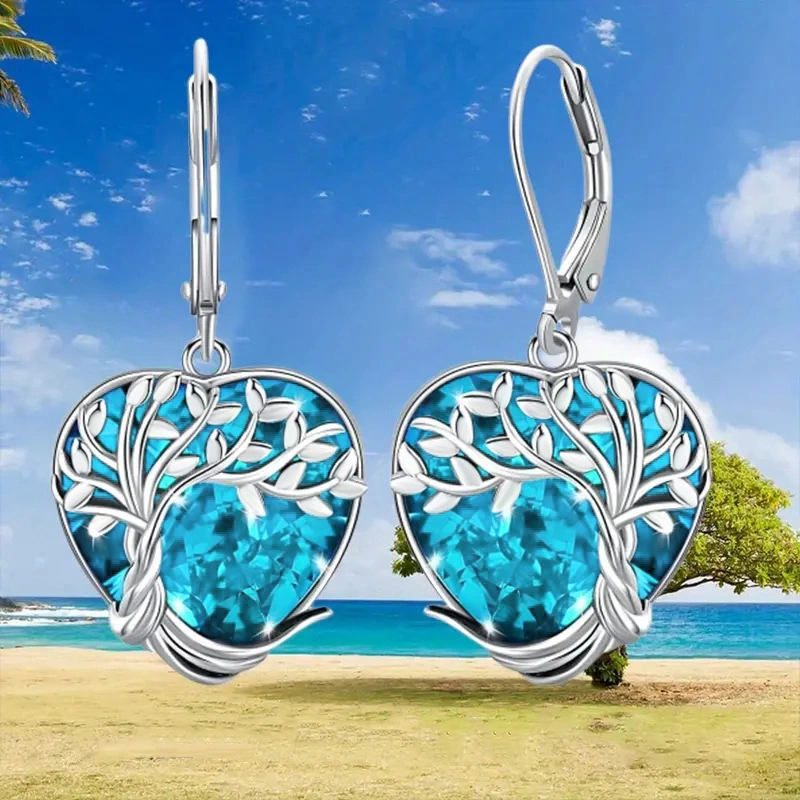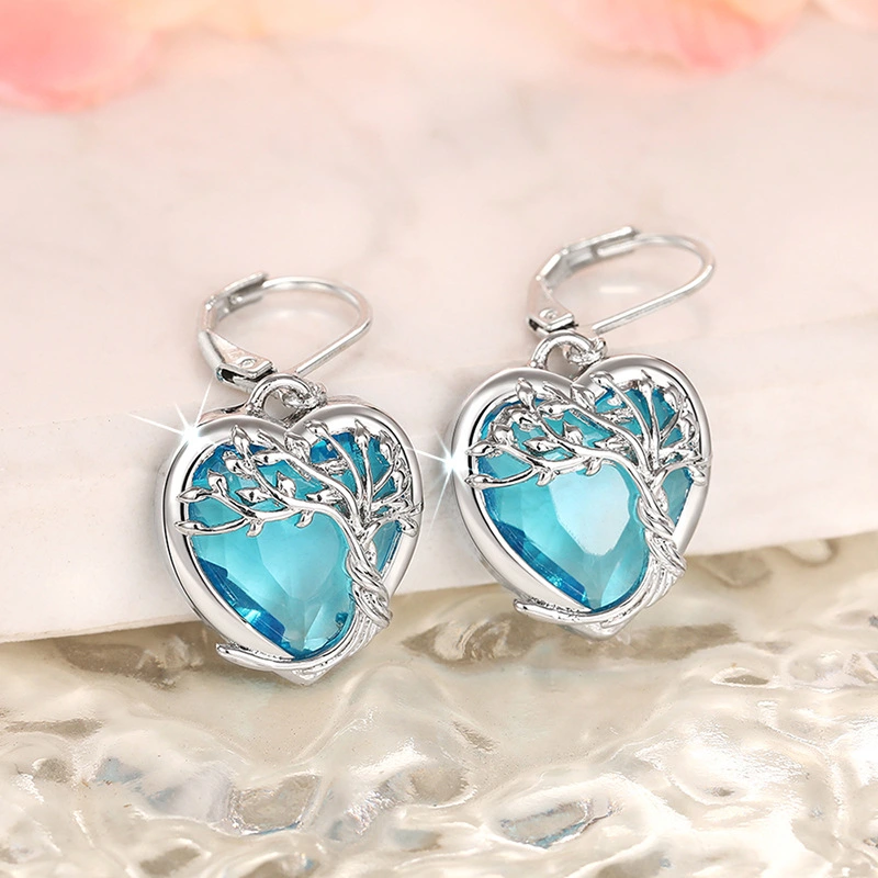 Brincos de coração de oceano mais vendidos para mulheres, joias em forma de coração de amor azul, joias femininas de temperamento elegante