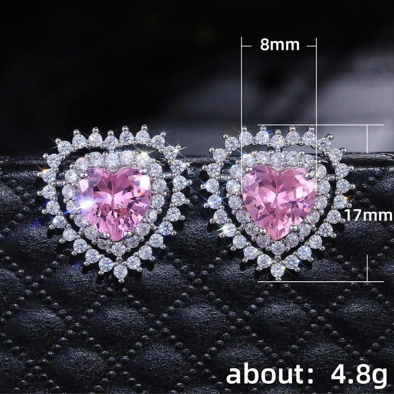 Brincos de coração de pêssego personalizados para meninas, brincos estilo floresta, todos a condizer, zircónia, coração, celebridade da internet, brincos do mesmo estilo, venda por grosso