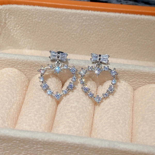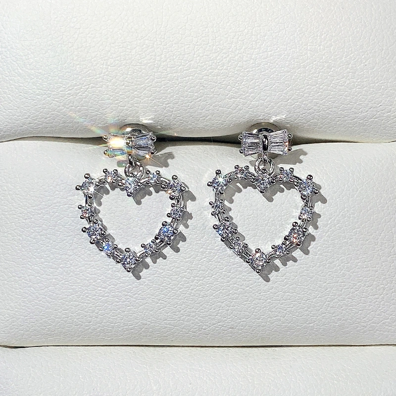 Brincos de coração de zircónia de alta qualidade, brincos de nicho com laço para mulheres, brincos modernos de novo estilo 2022