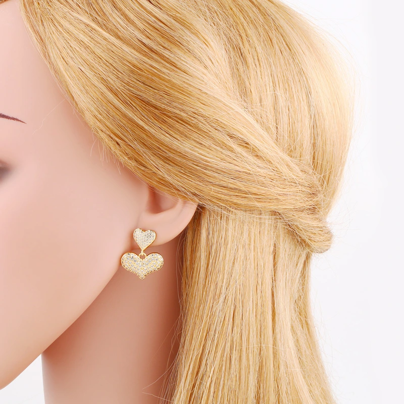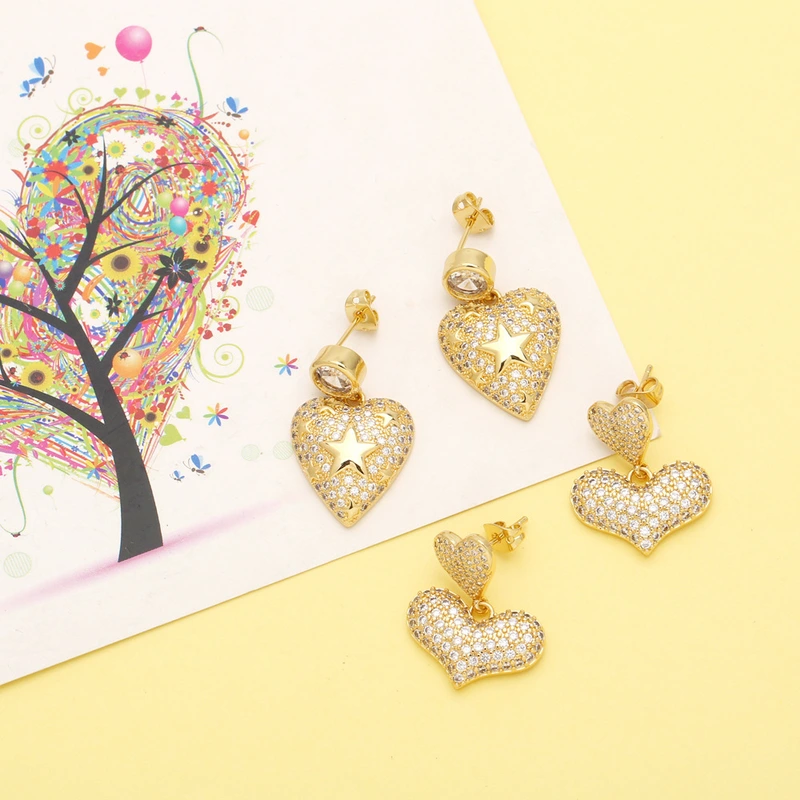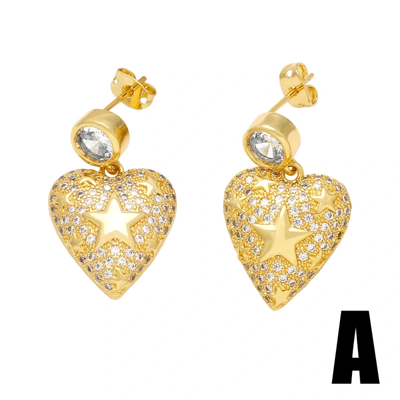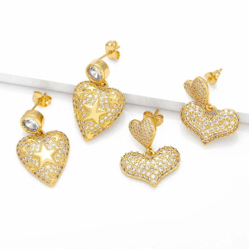 Brincos de coração europeus e americanos, novos brincos de coração de zircônia microincrustada, personalidade moderna para mulheres, ert70