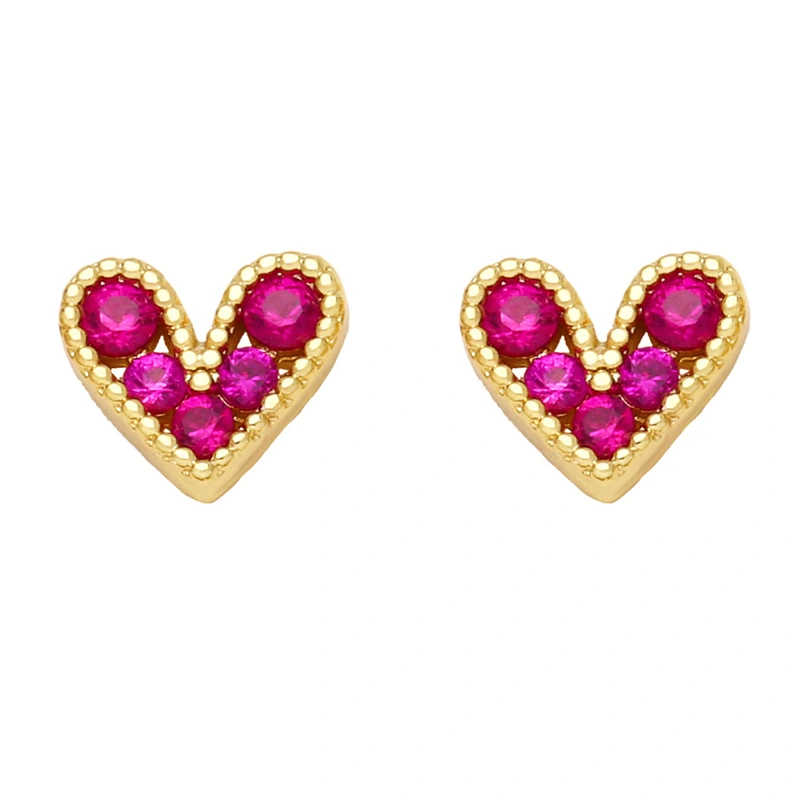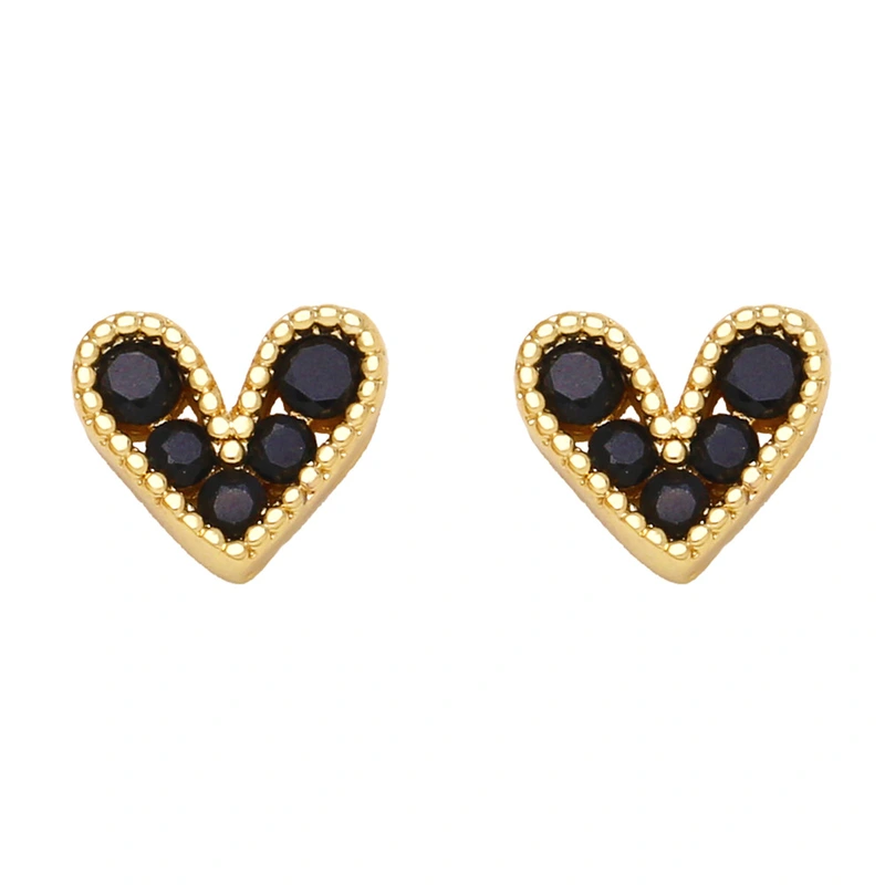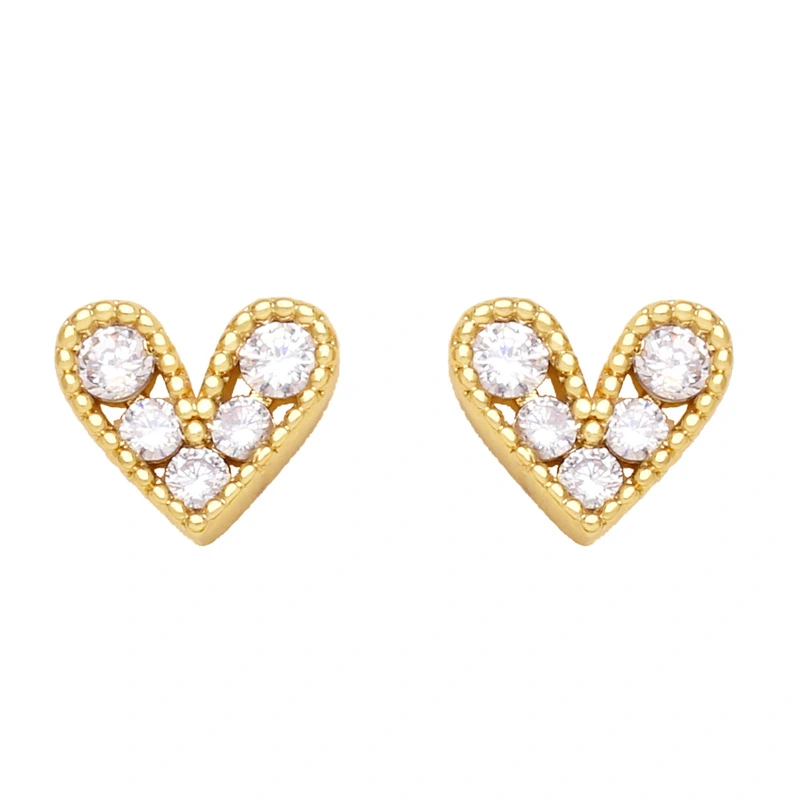 Brincos de coração pequenos com mini zircônias, nova tendência europeia e americana, design de nicho, brincos combinando para mulheres ery89