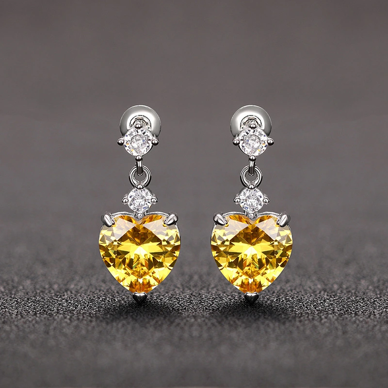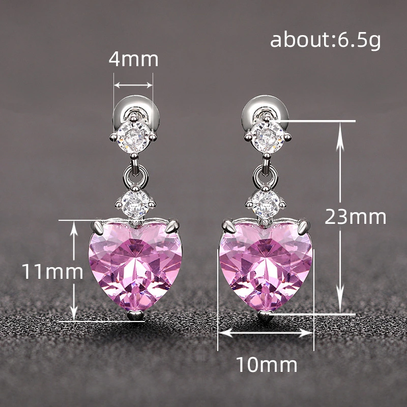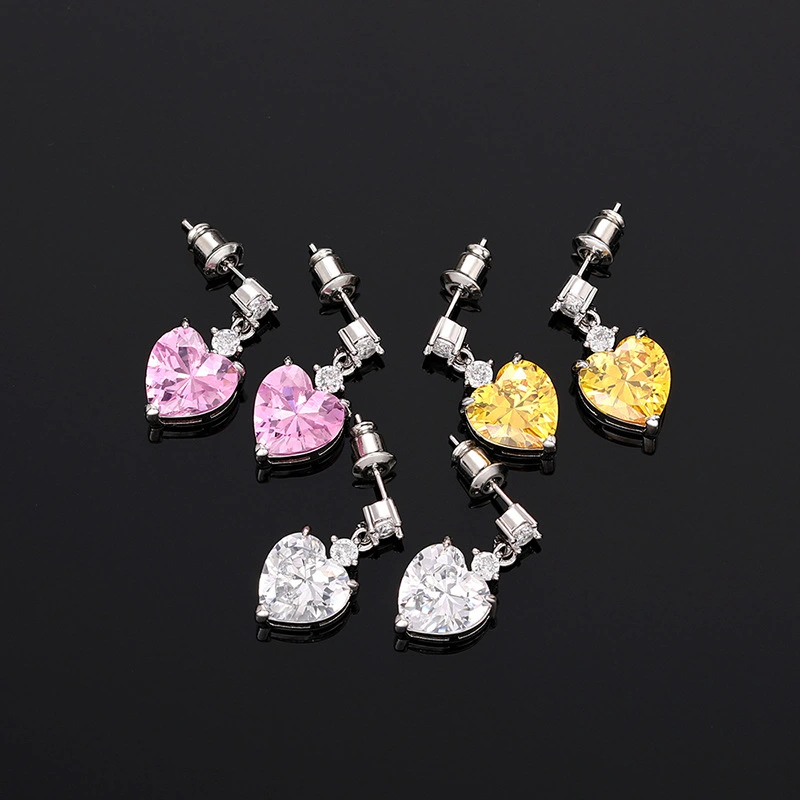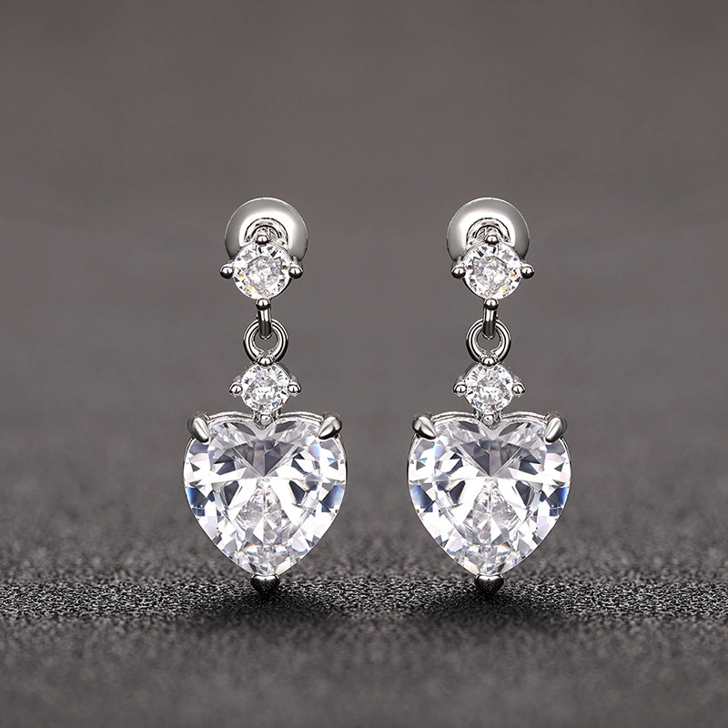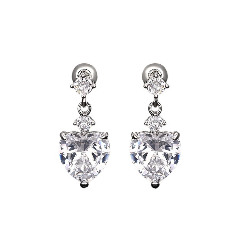 Brincos de coração super flash de luxo coreanos leves, brincos requintados em formato de coração doce, estilo universitário, vendas diretas da fábrica