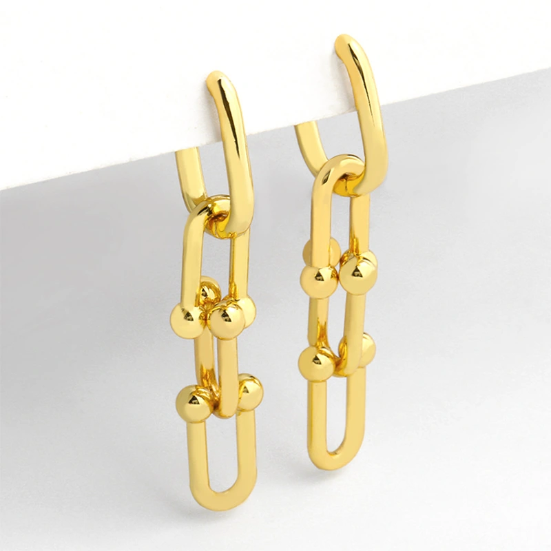 brincos de corrente em forma de U com design de nicho em estilo europeu e americano, brincos banhados a ouro de alta qualidade, elegantes e simples, erz47