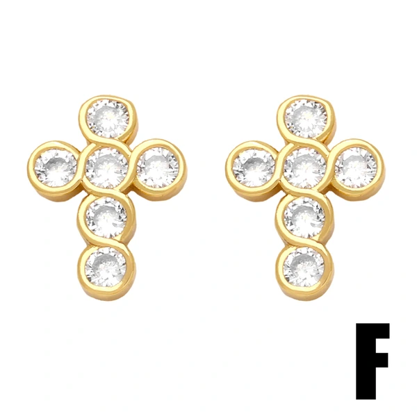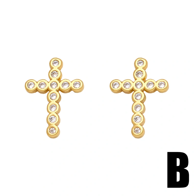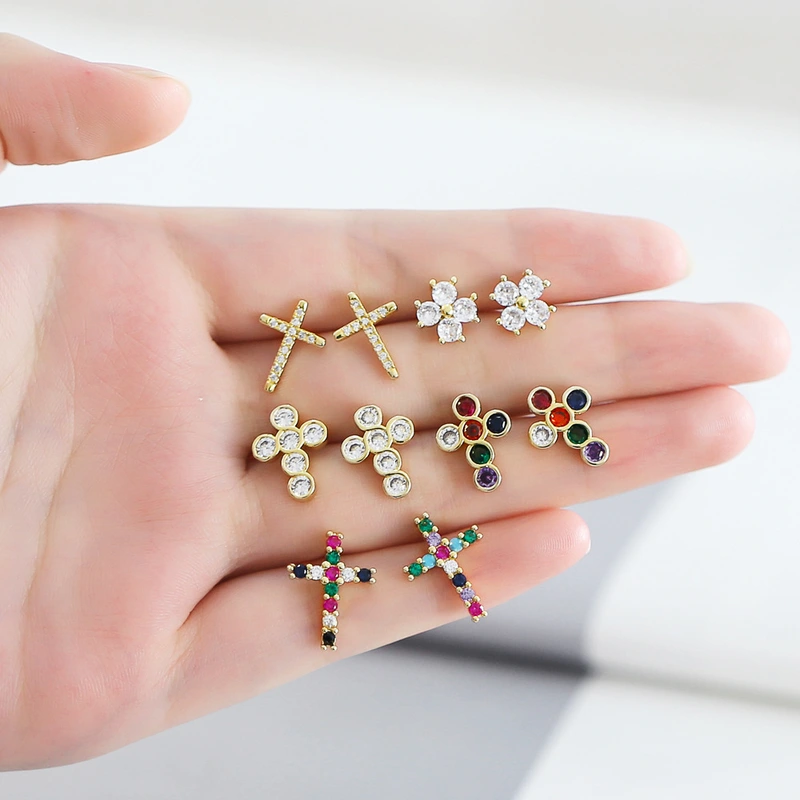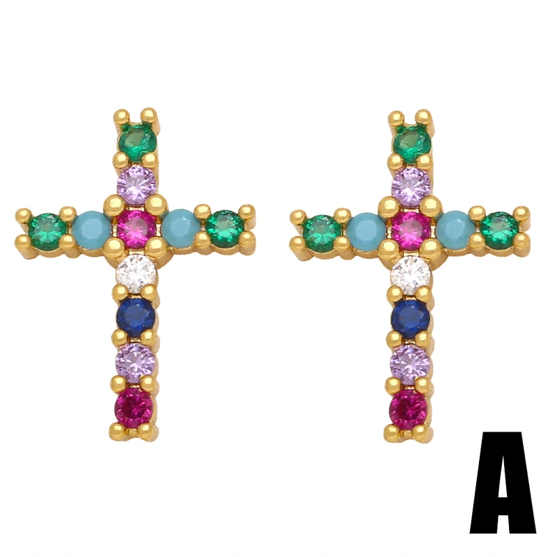 Brincos de cruz com zircônias coloridas incrustadas em joias europeias e americanas, brincos versáteis de personalidade da moda europeia e americana ert40