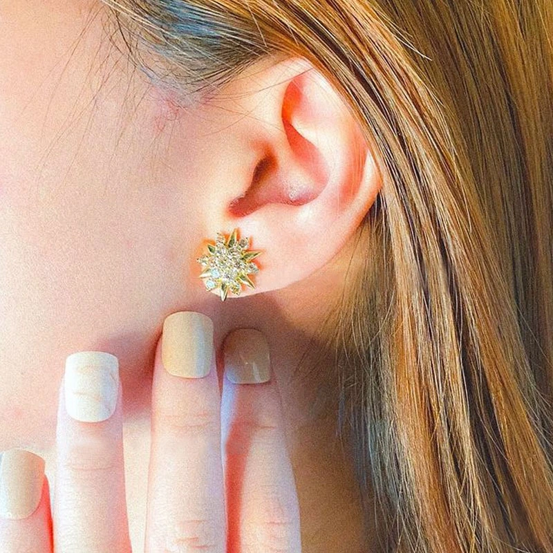 brincos japoneses e coreanos em forma de coração, brincos microincrustados de girassol e girassol bicolor, brincos elegantes de design oco