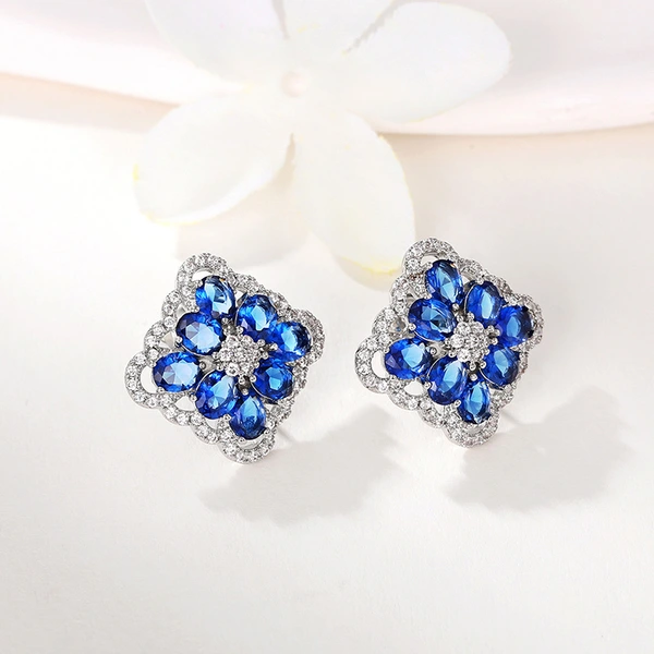 brincos de design personalizado de rosa azul brincos de temperamento exclusivo de alta qualidade exagerados brincos de flores combinando