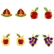 Brincos de diamante femininos fofos com frutas tropicais em estilo de liquidação, brincos de melancia vermelha, uva e maçã erx49