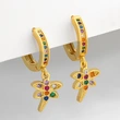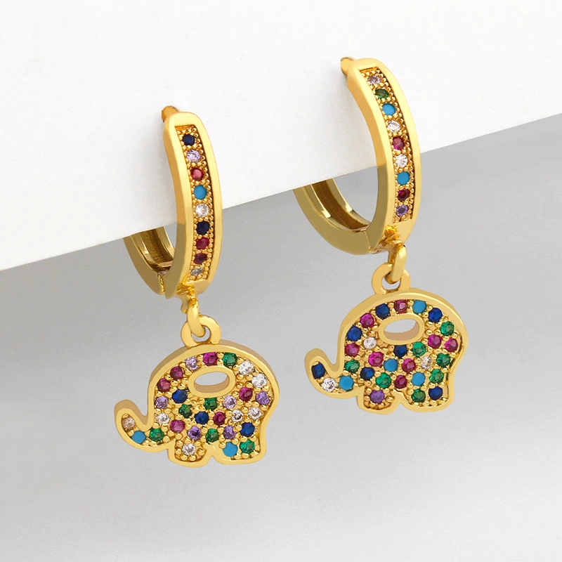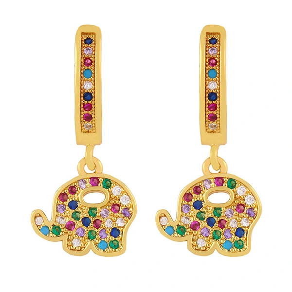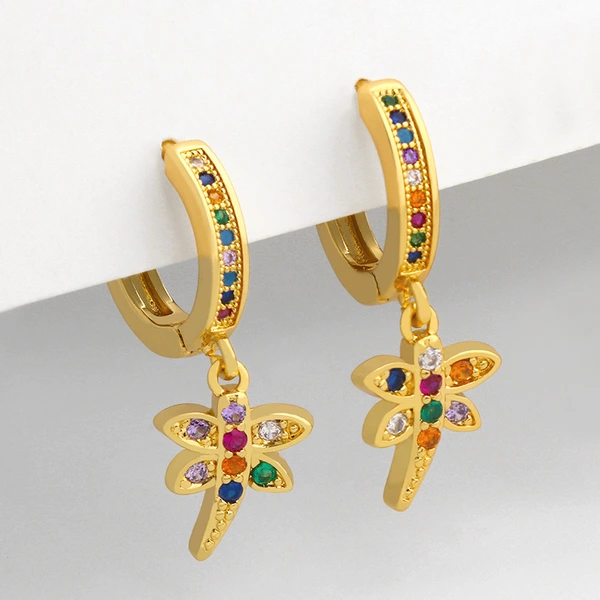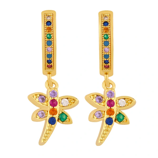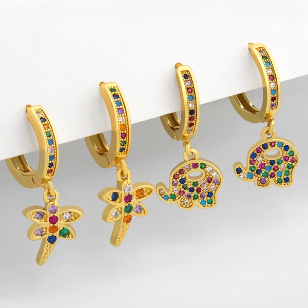 Brincos de elefante fofos europeus e americanos, brincos banhados a ouro verdadeiro, brincos de libélula e insetos da moda eru78