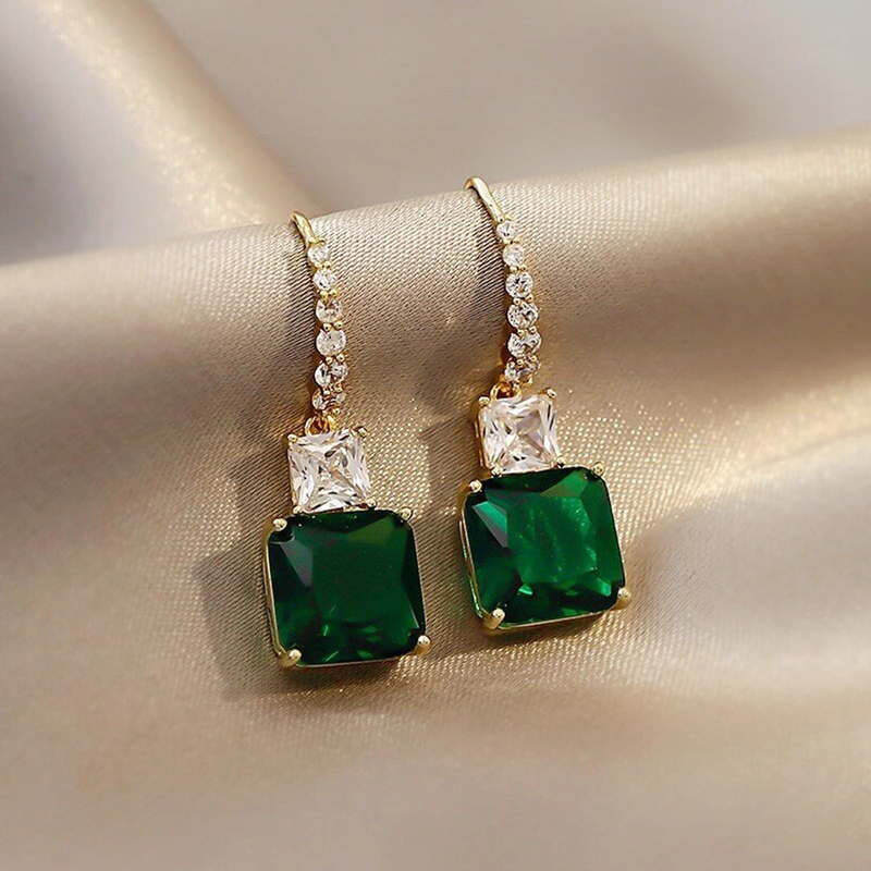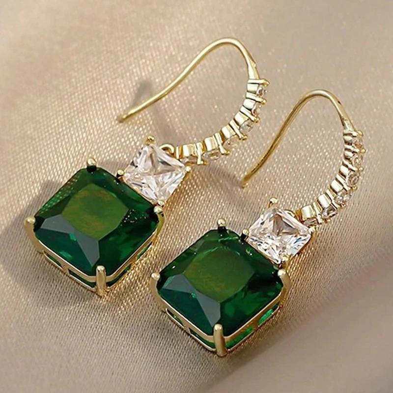 Brincos de esmeralda europeus e americanos mais vendidos, elegantes e modernos, brincos de diamante quadrados geométricos personalizados para mulheres