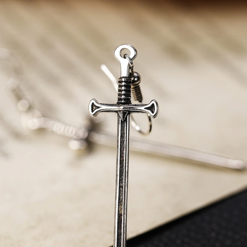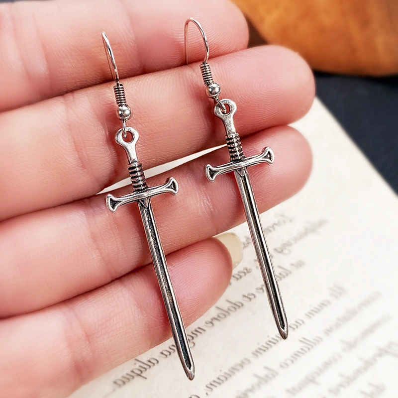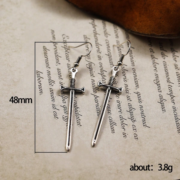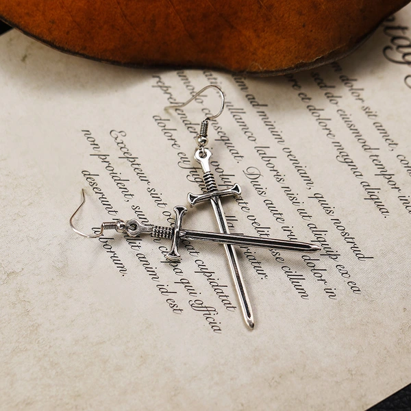 Brincos de espada cruzada de metal punk escuro europeu e americano, brincos de adaga de personalidade retro, brincos unissexo