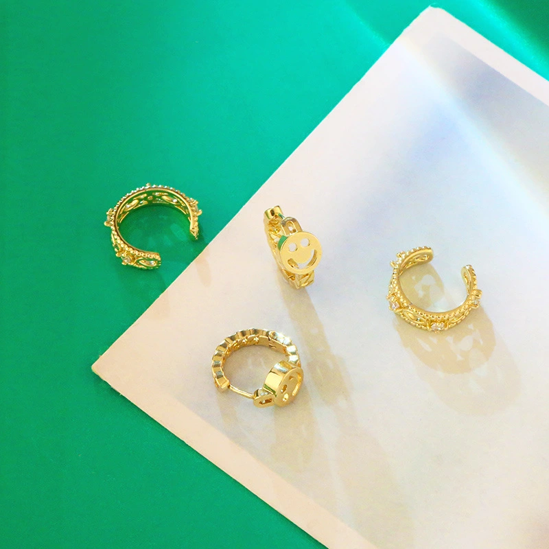 Brincos de estilo smiley com estilo europeu e americano, brincos de clipe de orelha com sorriso doce, mais vendidos, erx94