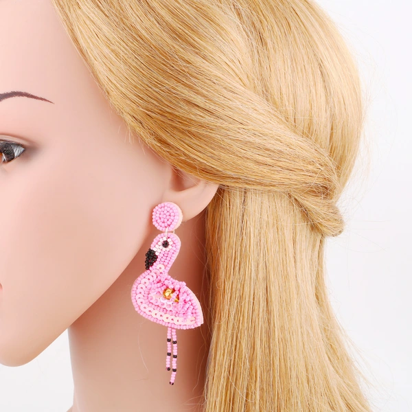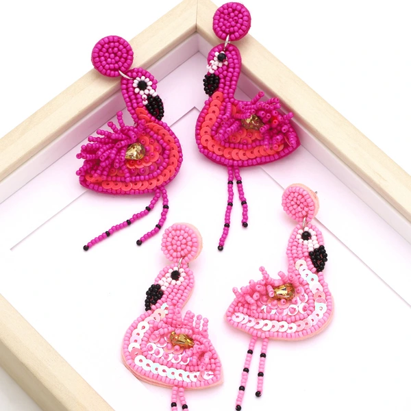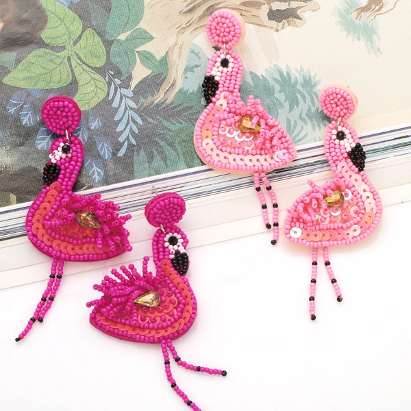 Brincos de flamingo simples europeus e americanos, brincos longos femininos criativos retrô erw33