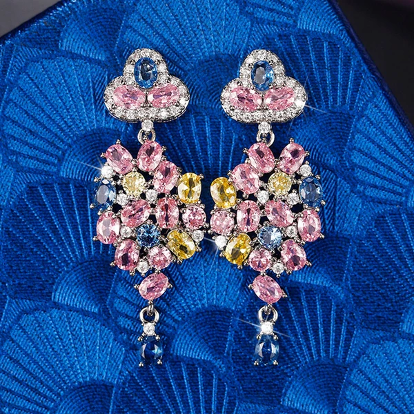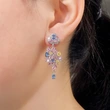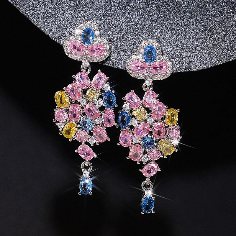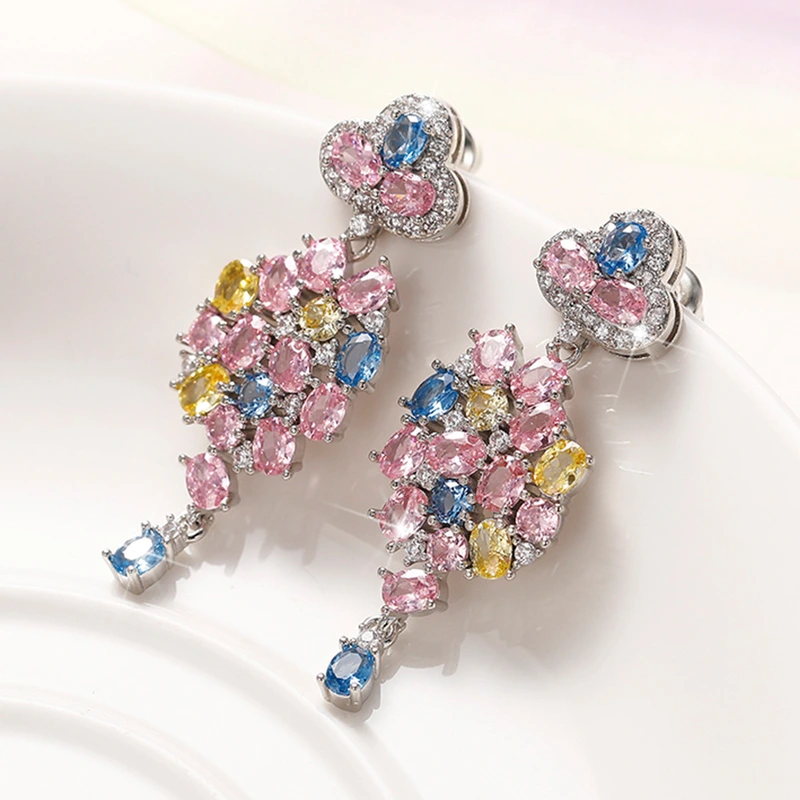 Brincos de flores de zircónia coloridas com temperamento europeu e americano, brincos de camélia tridimensionais requintados, recém-chegados