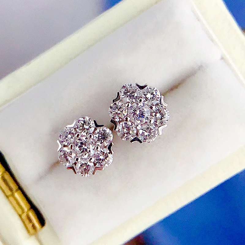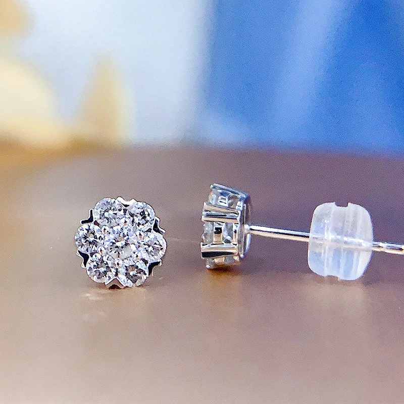 Brincos de flores em forma de coração com seis garras para mulheres, incrustados com zircónia, pequenos brincos frescos para namorada, brincos de presente do festival qixi