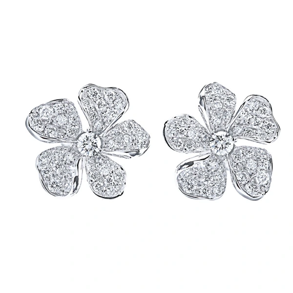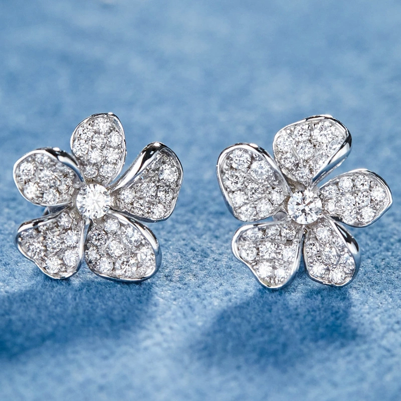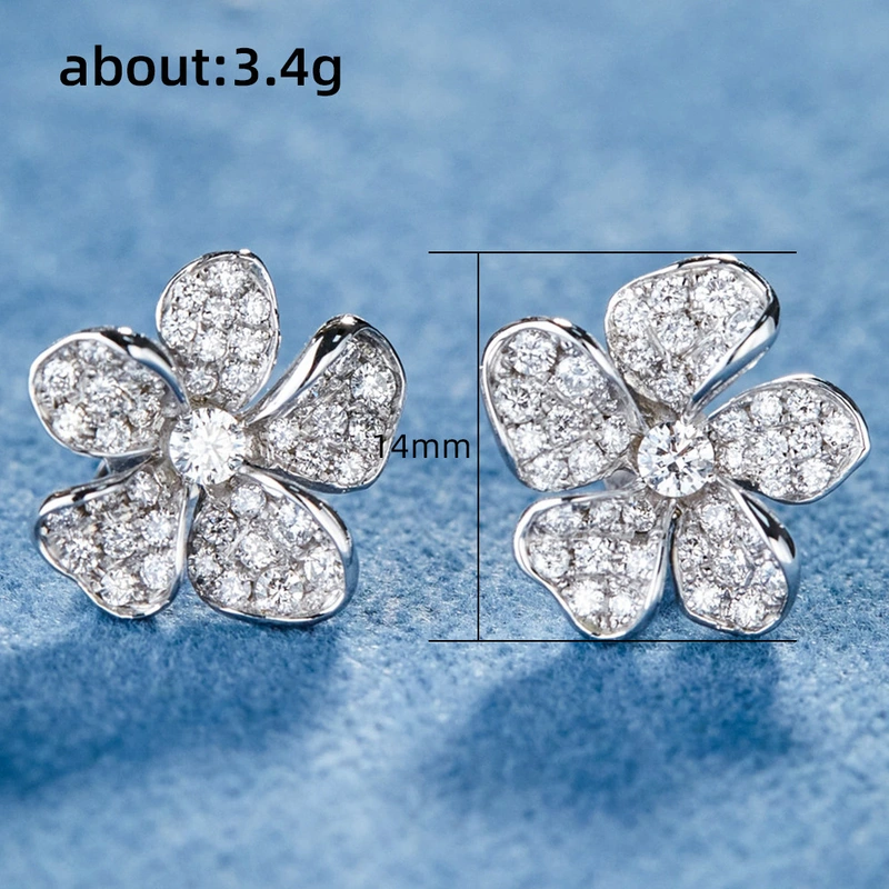 Brincos de flores frescas japonesas e coreanas, brincos de flores de zircônia brilhante, brincos de flores recomendados por xiaohongshu para mulheres