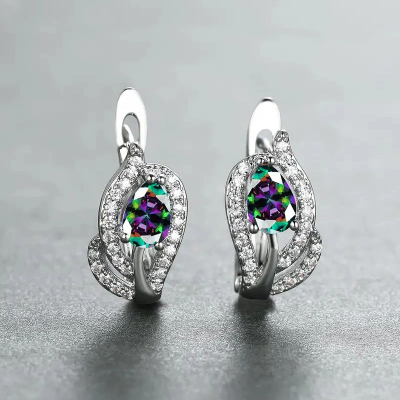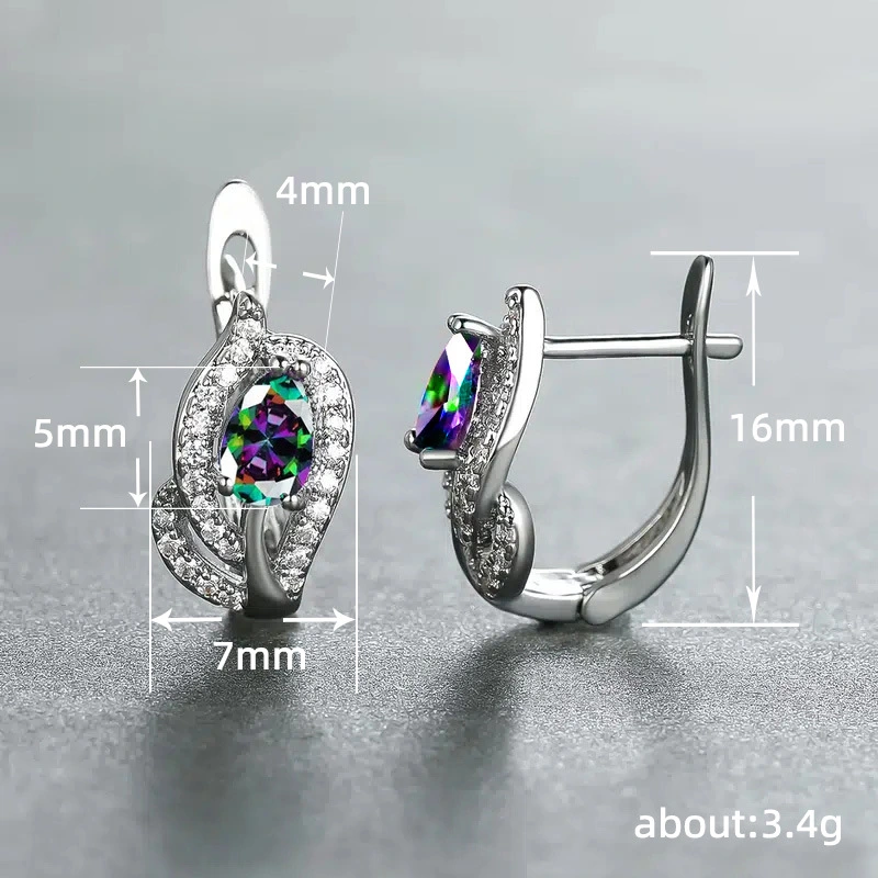 Brincos coreanos elegantes de temperamento antigo, misture e combine brincos ovais com microincrustações de zircónias brilhantes, vendas diretas da fábrica
