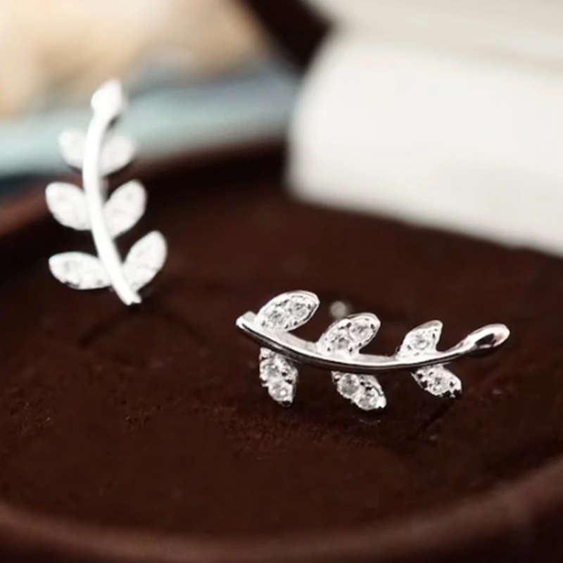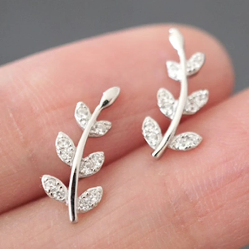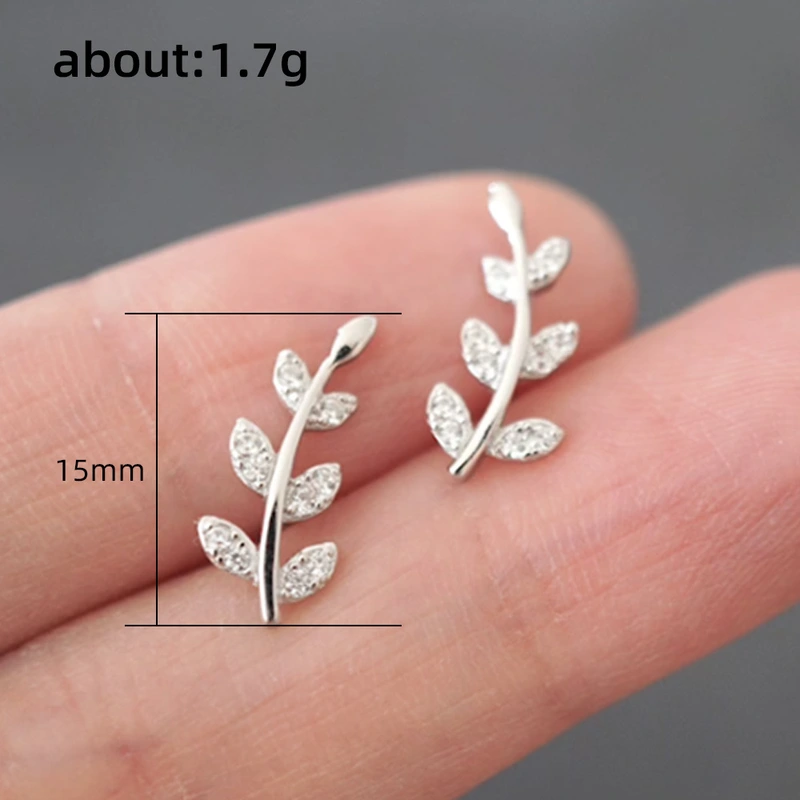 Brincos de folha de diamante temperamento florestal mini brincos de zircónia pequena em forma de folha brincos versáteis para meninas