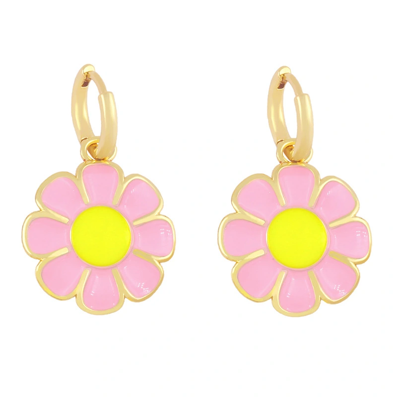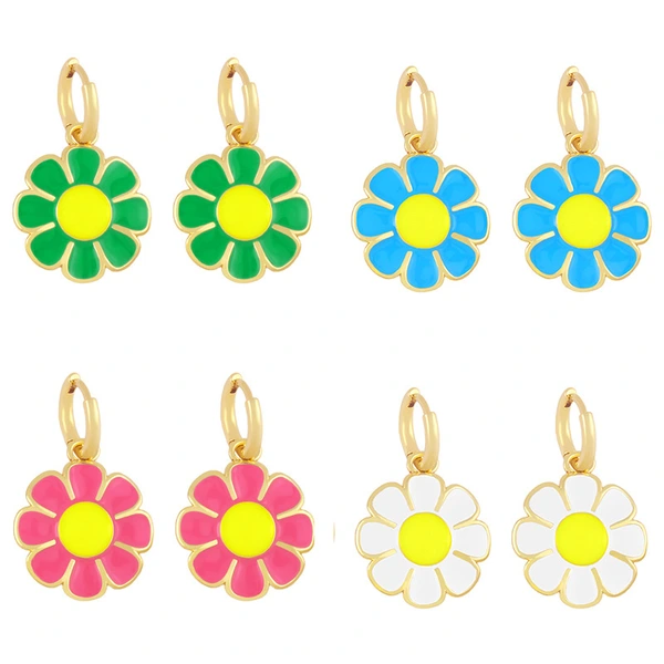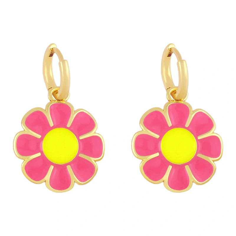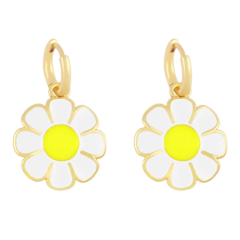 brincos japoneses e coreanos em forma de coração, brincos microincrustados de girassol e girassol bicolor, brincos elegantes de design oco
