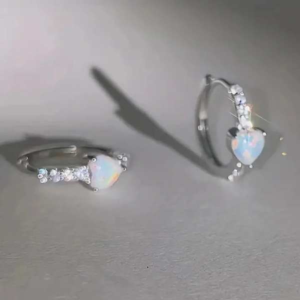 Brincos de imitação de opala em forma de coração para mulher, brincos elegantes e requintados com micro zircónias incrustadas