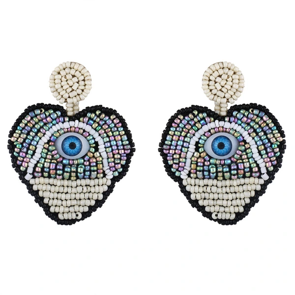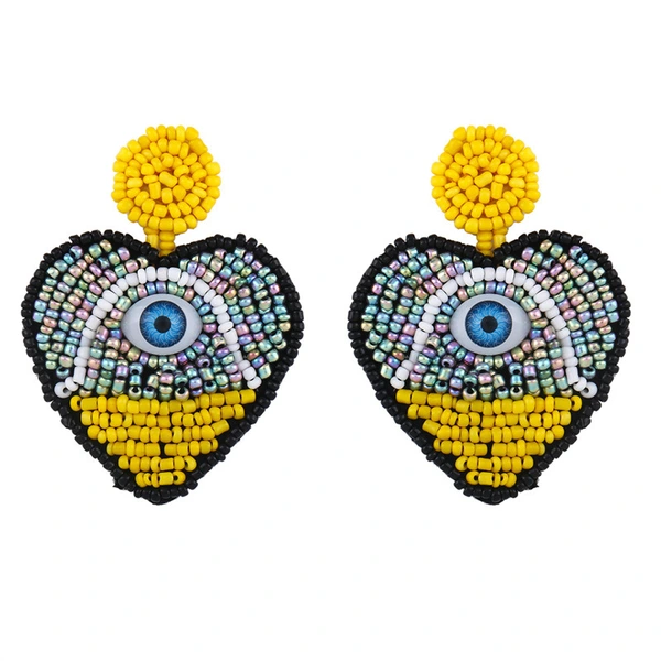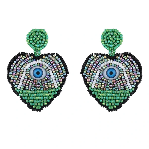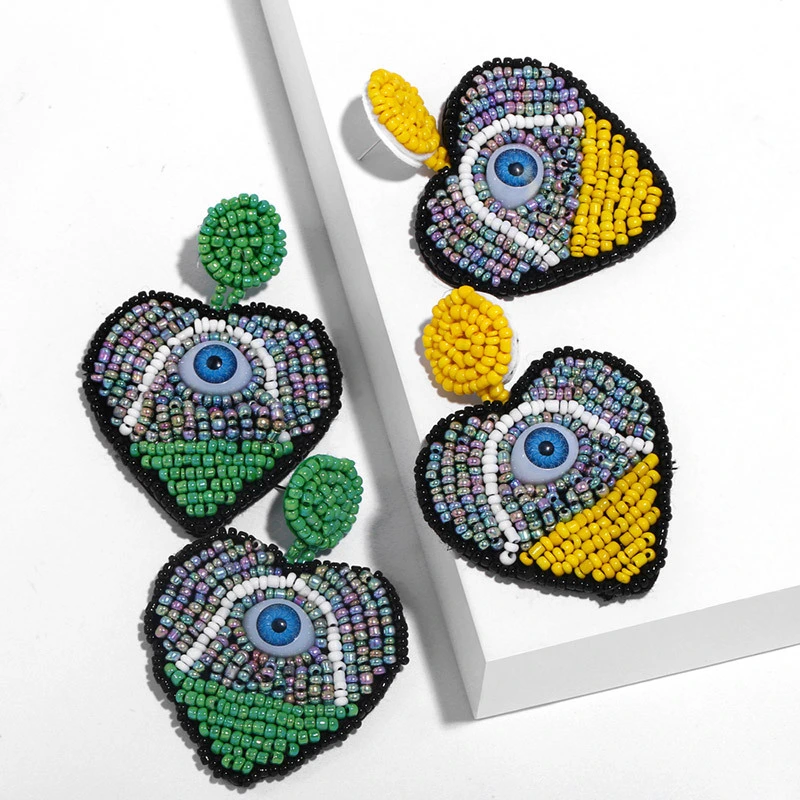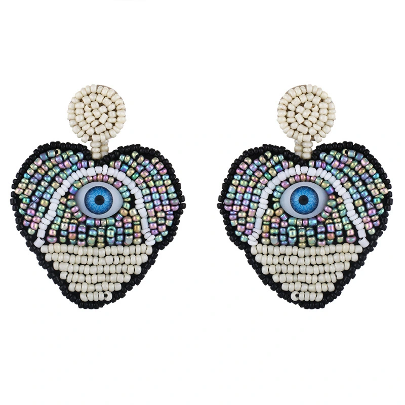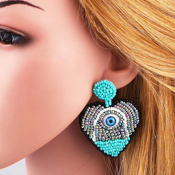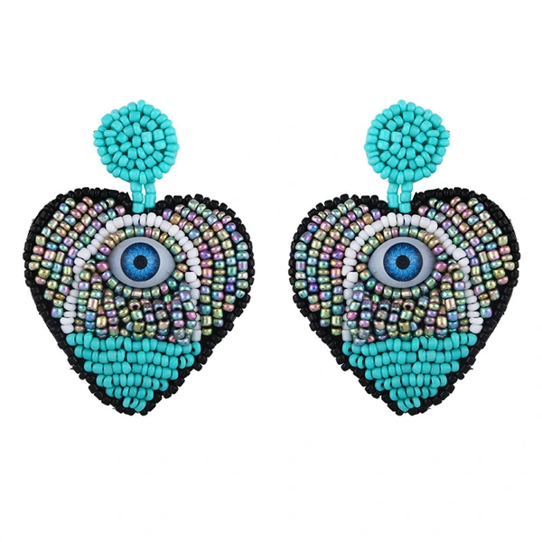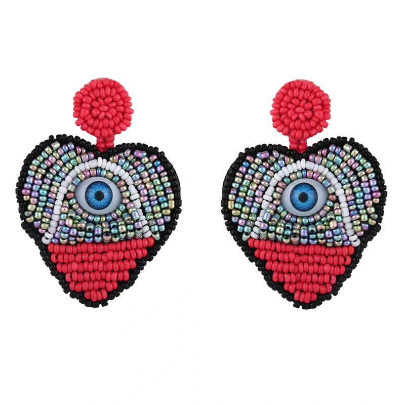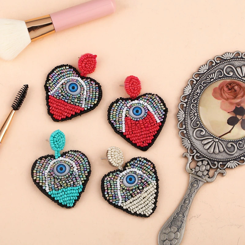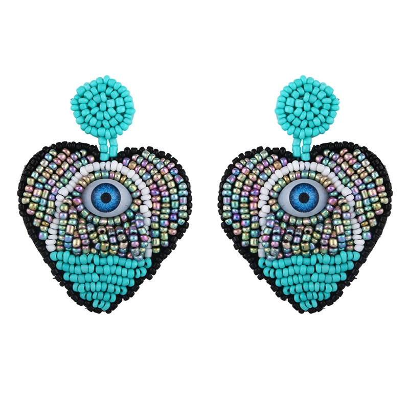 Brincos de liquidação outono e inverno 2023, brincos boêmios de olho de diabo, brincos de contas de coração coloridas erq89