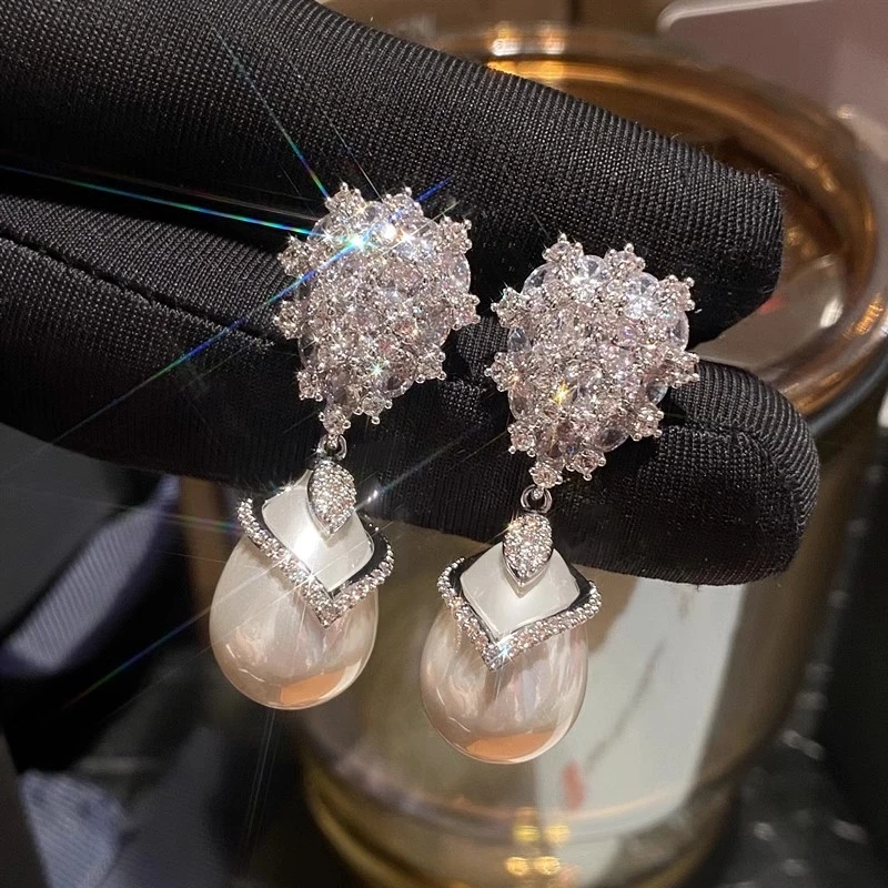 Brincos coreanos requintados com microincrustações de zircónia, super brilhantes, versáteis para o dia a dia, brincos leves e luxuosos de alta qualidade, fabricante de fontes