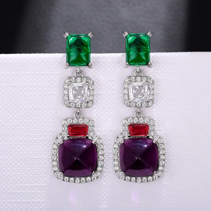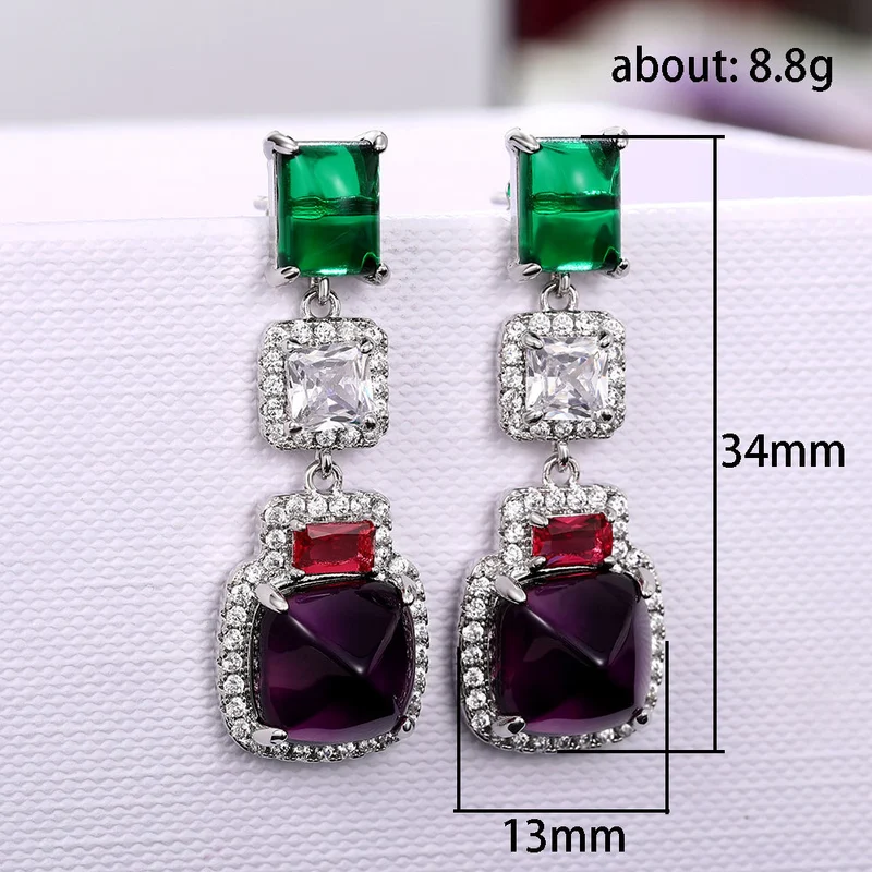 brincos de luxo estilo europeu e americano com contraste de esmeralda, brincos de celebridades de alta qualidade, brincos de combinação de noite da moda