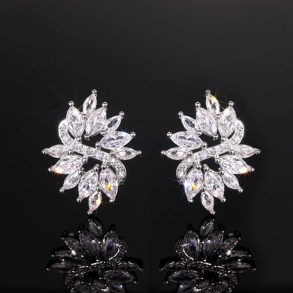 brincos de luxo leves e sofisticados de estilo recém-casado com design geométrico de olho de cavalo e zircónia, estilo de casamento moderno e elegante