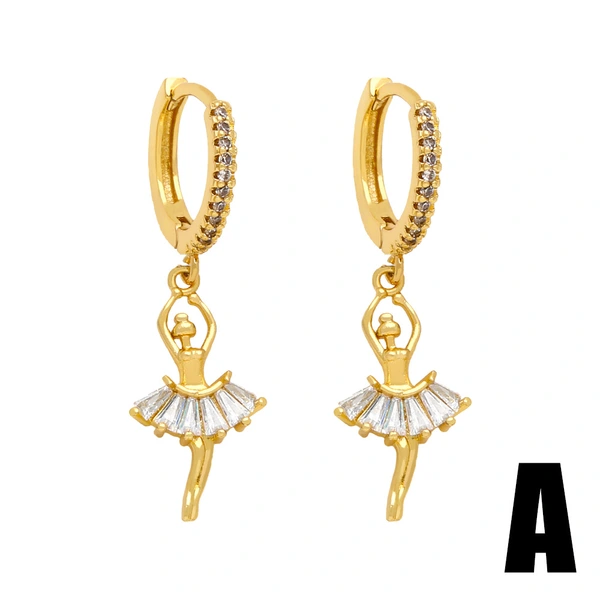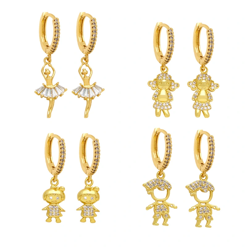 Brincos de menina de balé simples europeus e americanos com design de nicho, brincos de menino e menina ers21