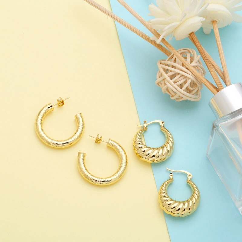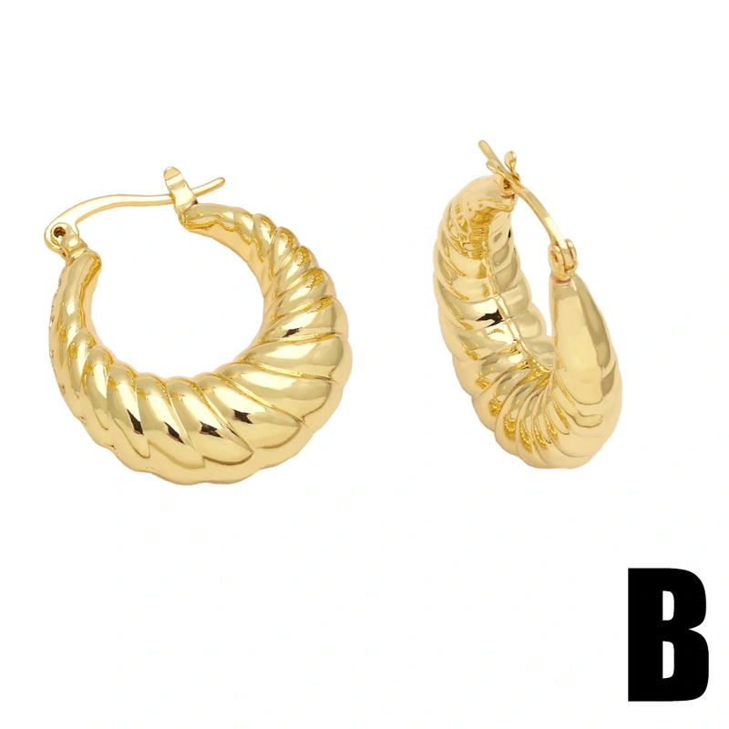 Brincos grandes em formato de C retro europeus e americanos, brincos de flores com ramos de metal, temperamento retro, orelha de bordo bicolor