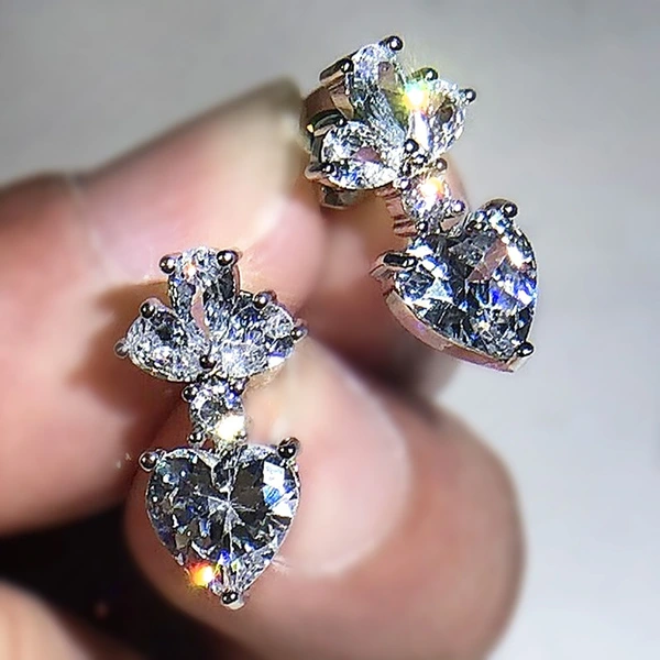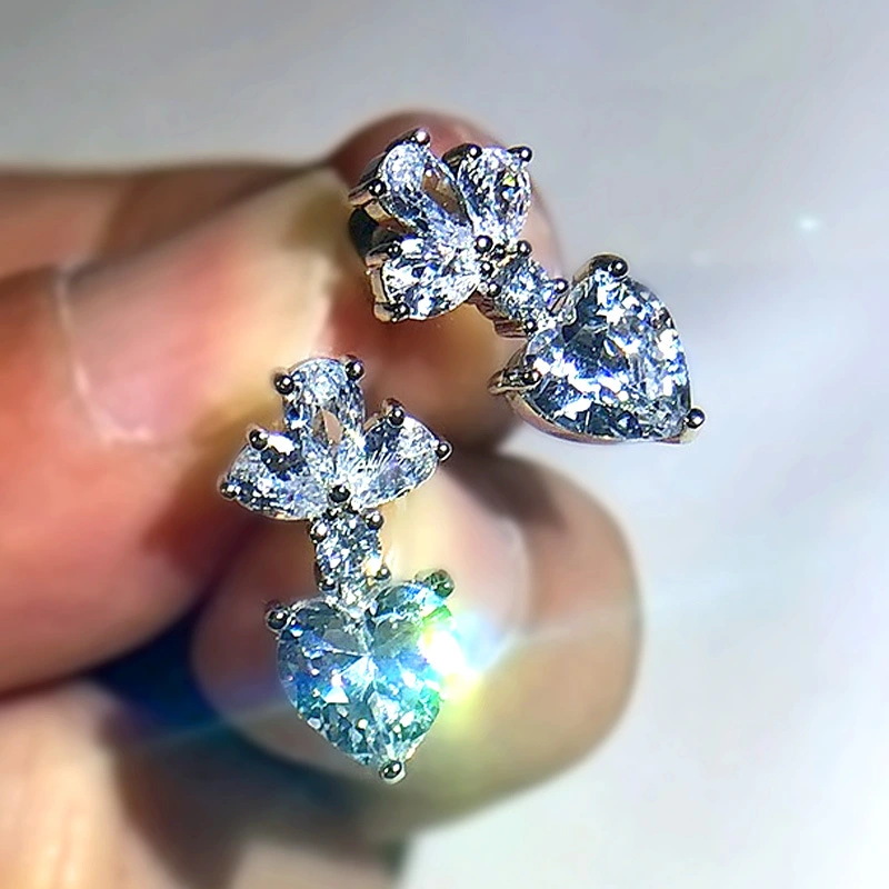 Brincos de novo estilo para mulheres, brincos de zircónia incrustados de amor requintados e luxuosos, joias elegantes para mulheres