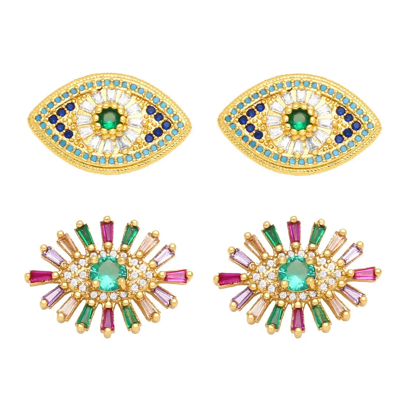 brincos de olho de diabo estilo frio europeu e americano brincos de olho de zircônia colorida estilo joias era055