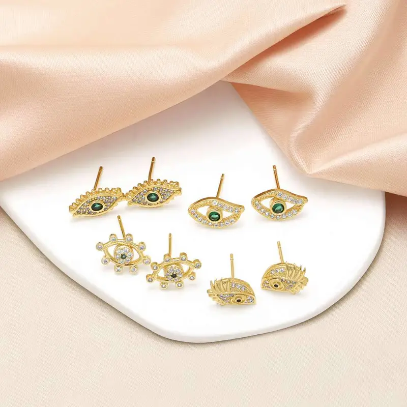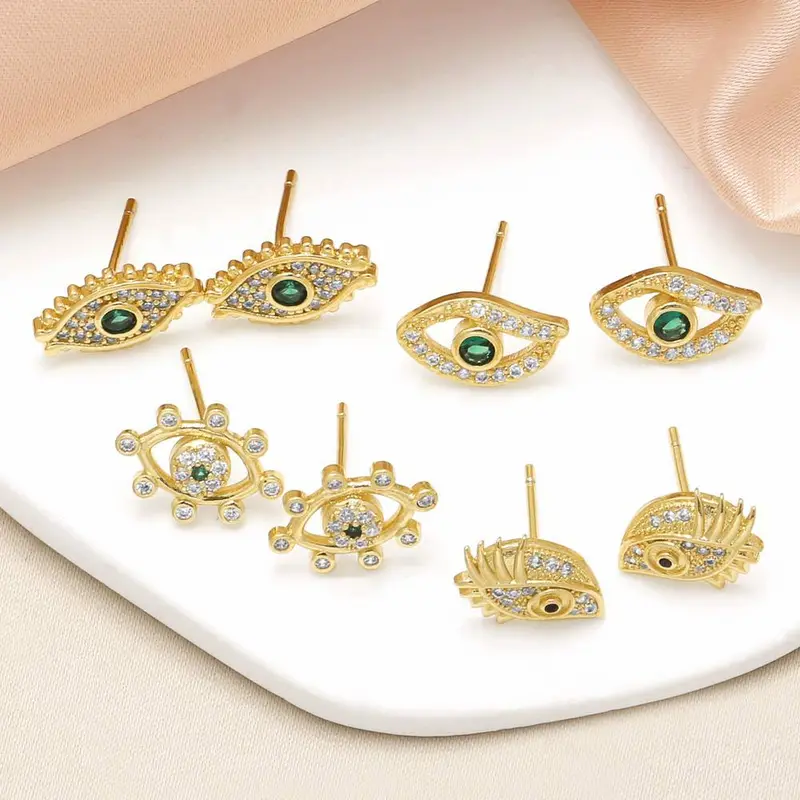 Brincos de olho de diabo mais vendidos para mulheres, brincos de cobre banhados a ouro 18k com zircônia incrustada, era359
