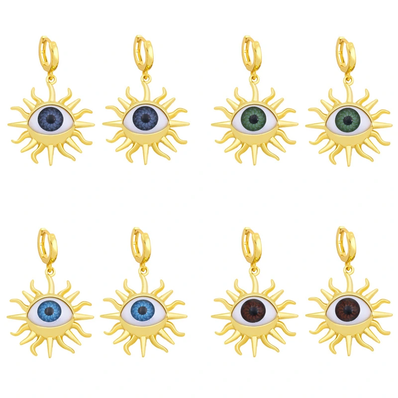brincos de olho europeus e americanos banhados a ouro com gotas de óleo, brincos de olho de diabo atacado ery39