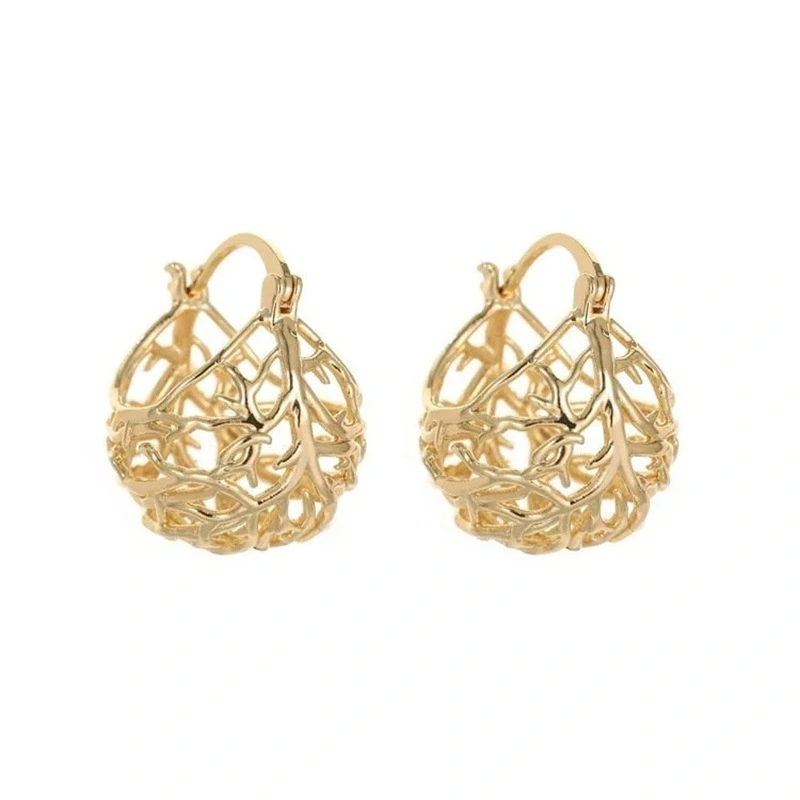 brincos de ouro franceses de alta qualidade, novos brincos personalizados de metal oco com formato de árvore da vida e cesta de flores