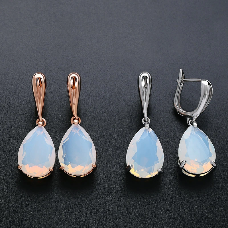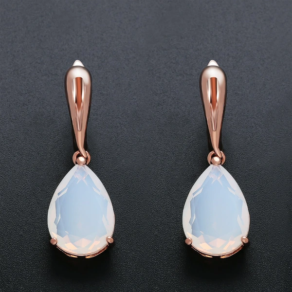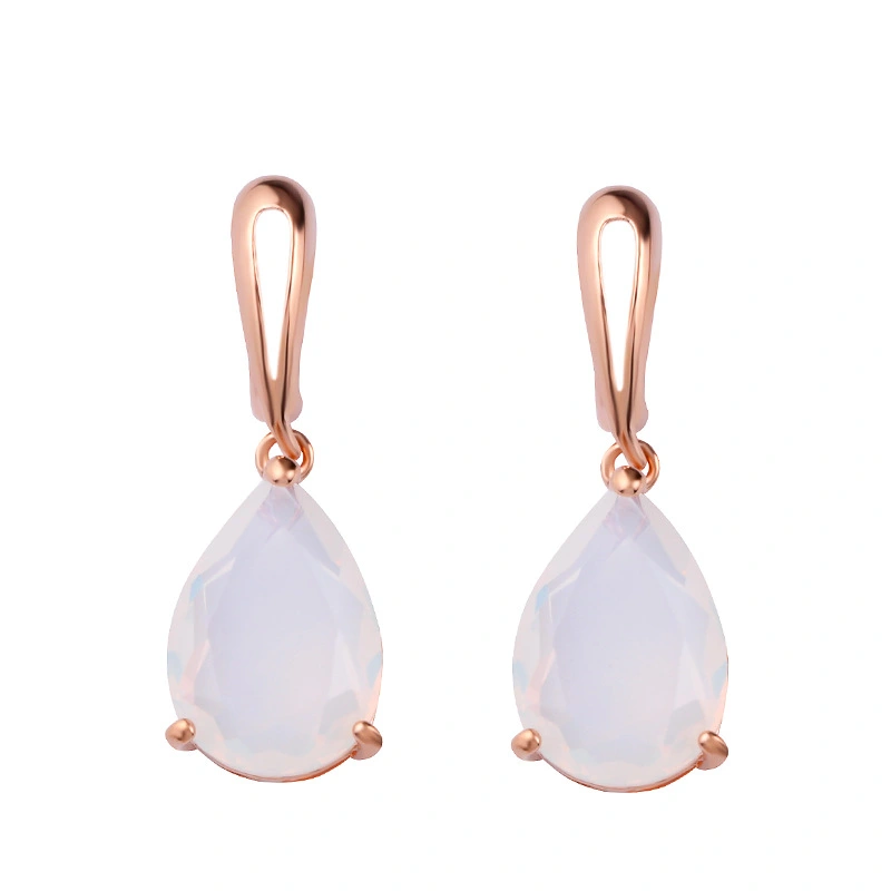 Brincos de ouro rosa temperamento para festa à noite, generosos, baixos, femininos, com pedras preciosas coloridas, brincos simples de opala erp13
