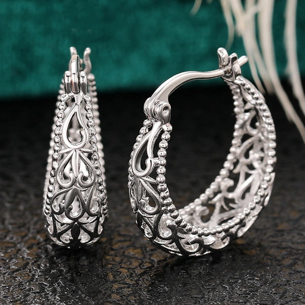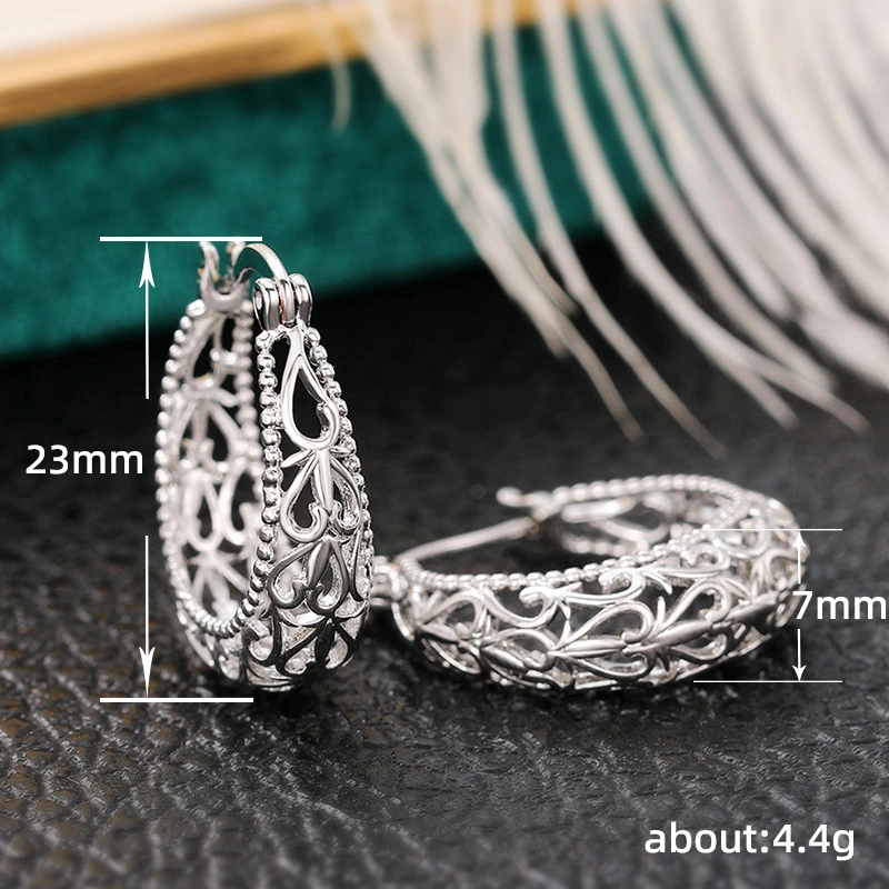 brincos de padrão oco esculpidos retrô estilo agete, brincos de banquete de casamento exagerados europeus e americanos, brincos de videira
