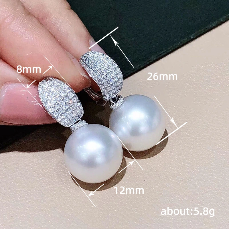 brincos de pérolas aristocráticos, gentis e elegantes para mulheres, brincos de pérolas super brilhantes e microincrustadas, estilo revista de celebridades