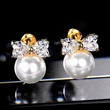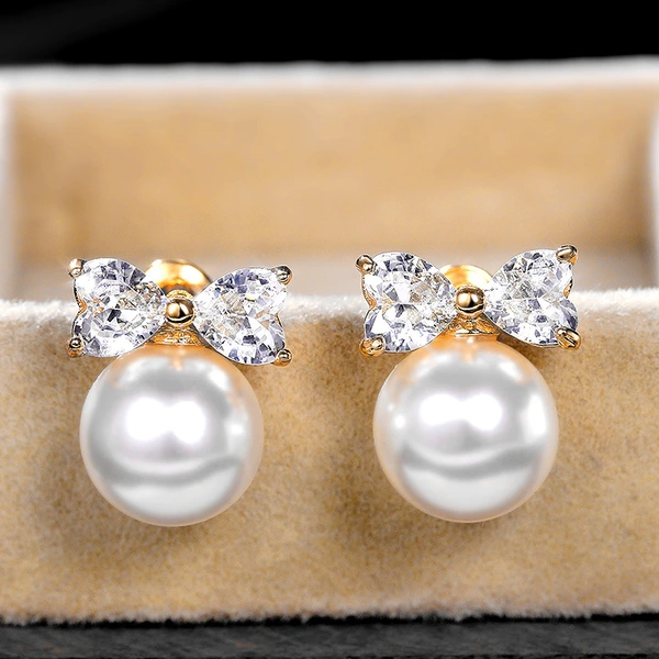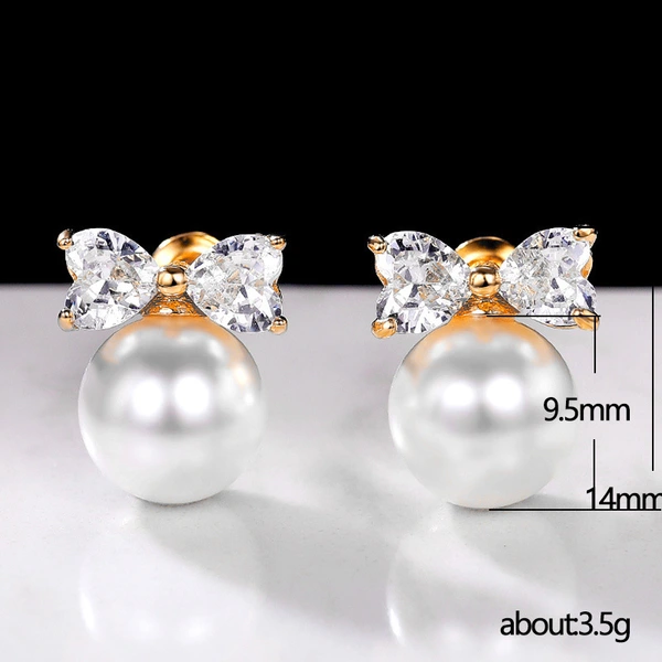Brincos de pérolas artificiais com laço fofo, mais vendidos, brincos curtos de temperamento moderno para mulheres