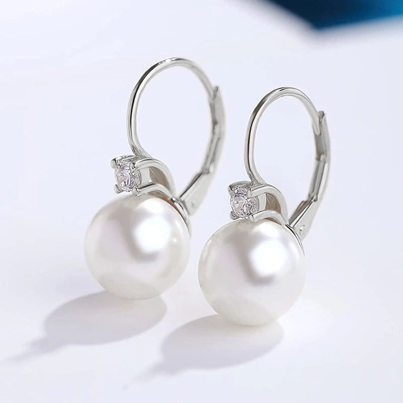 Brincos de pérolas artificiais incrustadas com zircónias para mulher, brincos modernos e elegantes, joias requintadas para combinar diariamente