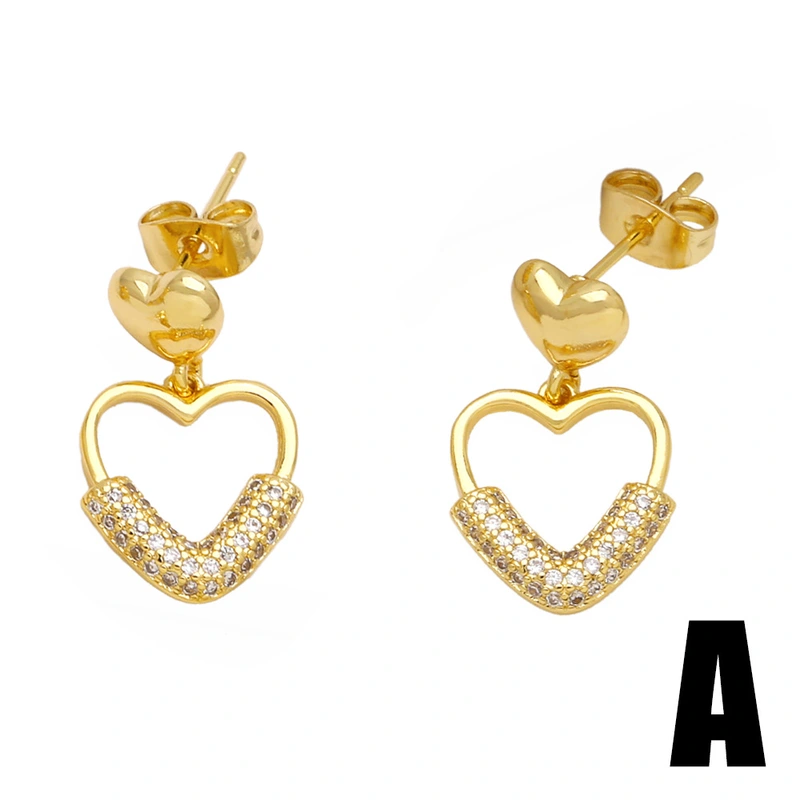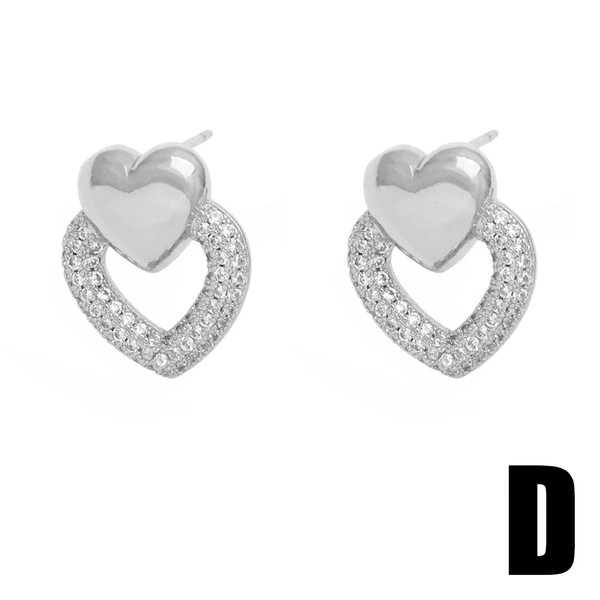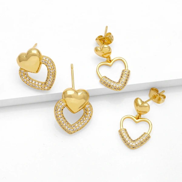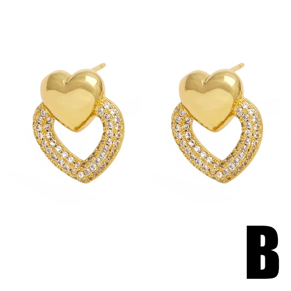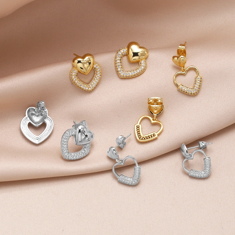 Brincos de pérolas de coração europeus e americanos, simples, com personalidade, todos os tipos de zircônias incrustadas, banhados a ouro, joias ery52