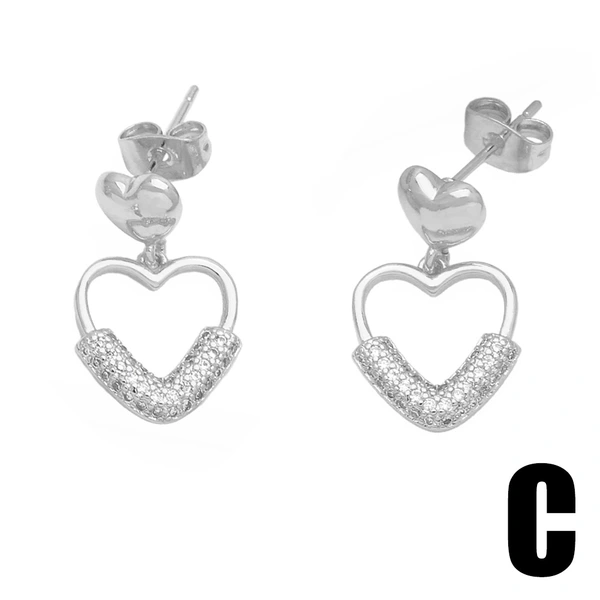 Brincos de alta qualidade para serviços pesados, totalmente incrustados, luxuosos brincos de coração em forma de C, brincos de moda europeus e americanos